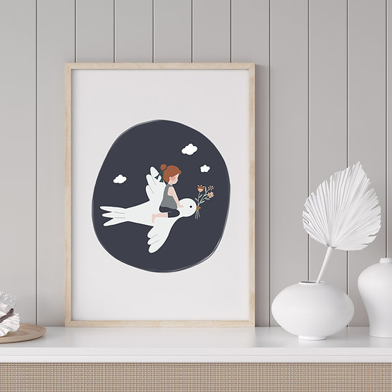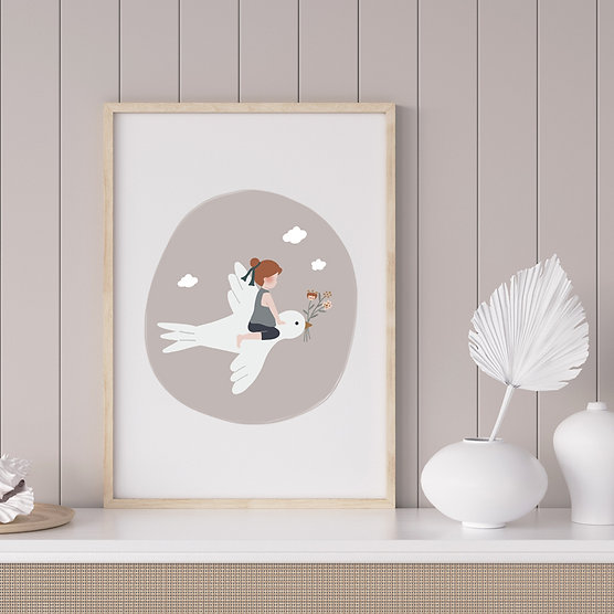 Créée par une artiste talentueuse, cette illustration capture l’innocence et la joie de l’enfance, avec ses couleurs pastels et son inspiration onirique.