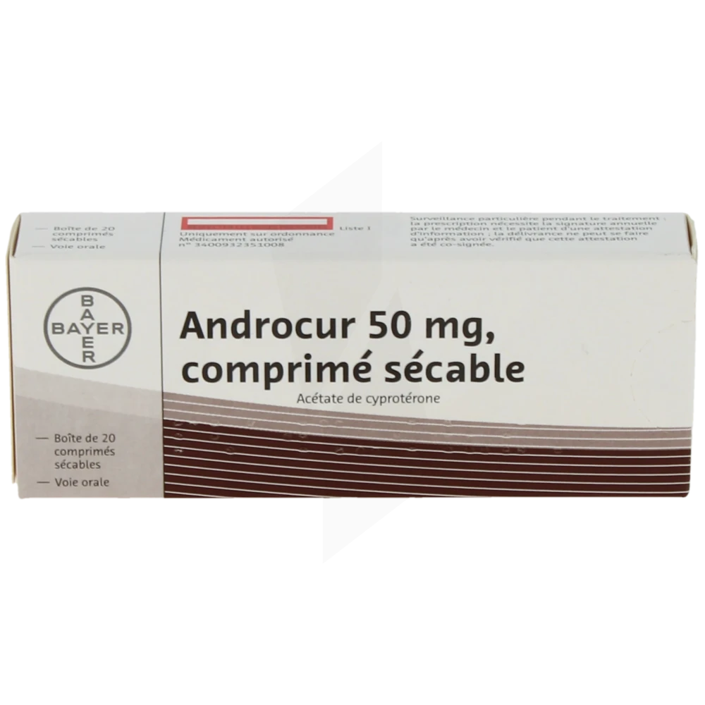 En cas d’amélioration clinique, votre médecin pourra diminuer la posologie d’ANDROCUR 50 mg à ½ comprimé par jour toujours en association à l’estradiol ou au valérate d’estradiol pendant les 20 jours de prise d’ANDROCUR 50 mg.