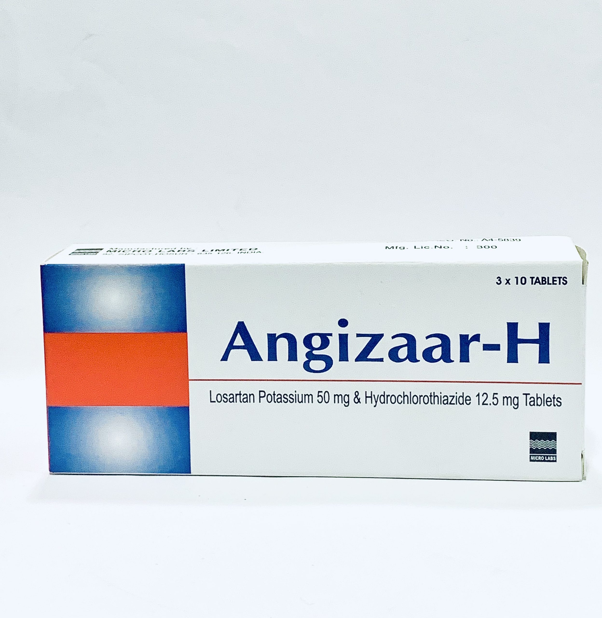 Le comprimé Angizaar H est utilisé pour traiter l’hypertension (pression artérielle élevée) et réduire le risque d’accident vasculaire cérébral (AVC) chez les patients hypertendus. Il s’agit d’une association médicamenteuse généralement utilisée lorsqu’un seul médicament ne suffit pas à contrôler l’hypertension artérielle. Il contient du losartan et de l’hydrochlorothiazide, qui favorisent la relaxation et la dilatation des vaisseaux sanguins (artères) pour faciliter la circulation sanguine dans tout l’organisme. De plus, il prévient l’absorption excessive de sel dans l’organisme, prévenant ainsi la rétention d’eau. Il abaisse ainsi la tension artérielle et prévient le risque d’AVC, de crise cardiaque et d’Å“dème (surcharge liquidienne). Dans certains cas, il peut provoquer des effets secondaires tels que des infections des voies respiratoires supérieures, des étourdissements, une sensation de fatigue, des nausées, de la diarrhée, des maux de dos et des symptômes du rhume ou de la grippe comme la toux.