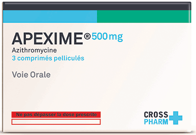 Apexime® 500 mg (Azithromycine) comprimés pelliculés de 500 mg.