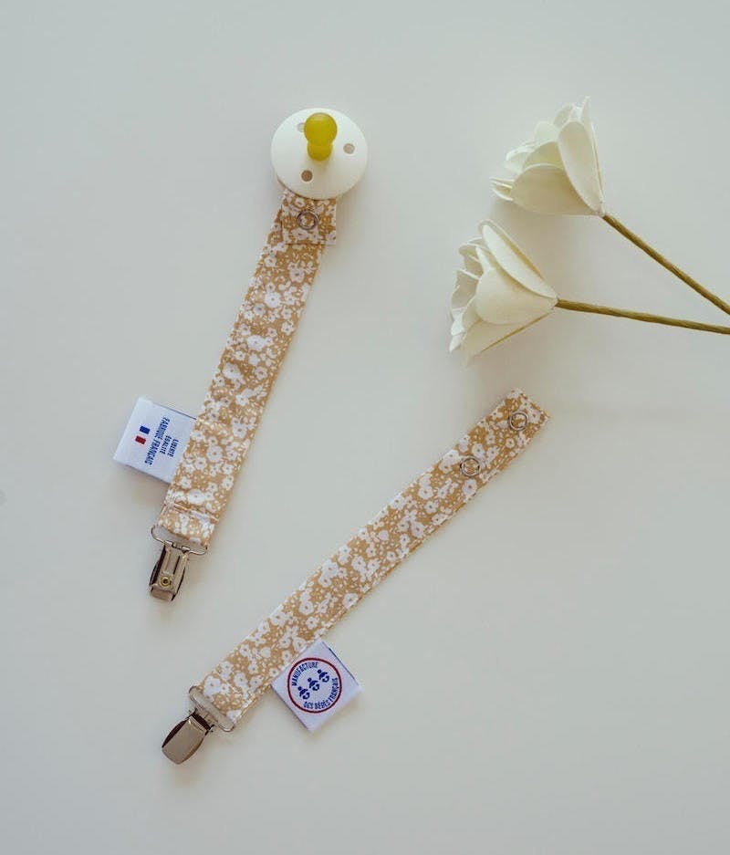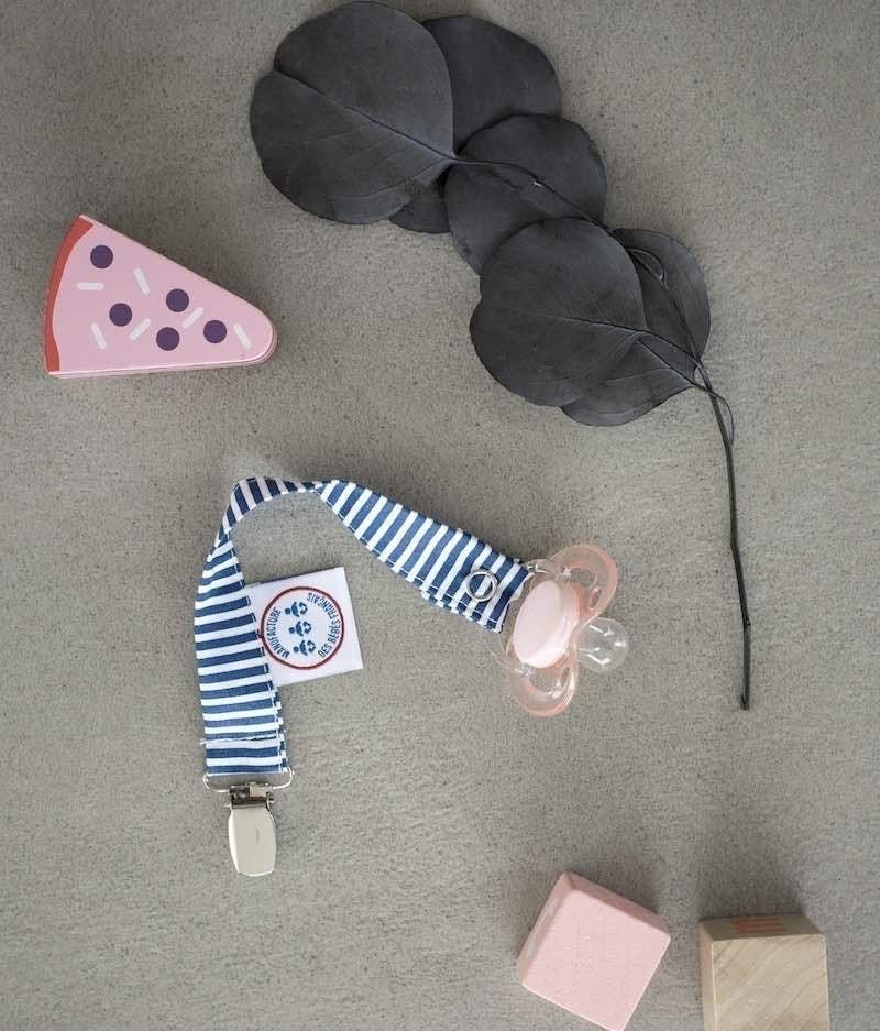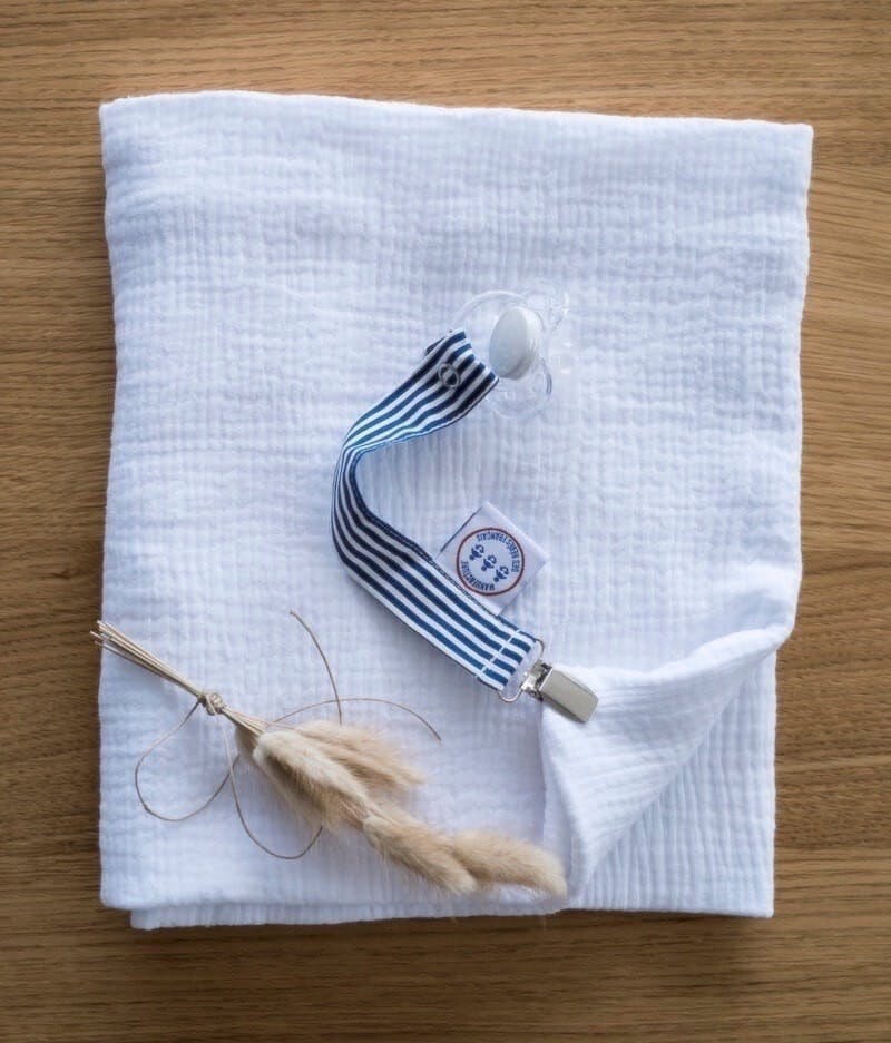 Nous proposons l’attache-tétine dans des coloris naturels et intemporels, que vous pouvez associer à un autre article de la marque Manufacture des bébés français (bavoirs, langes..) pour un cadeau de naissance assorti et fonctionnel qui fera sensation.