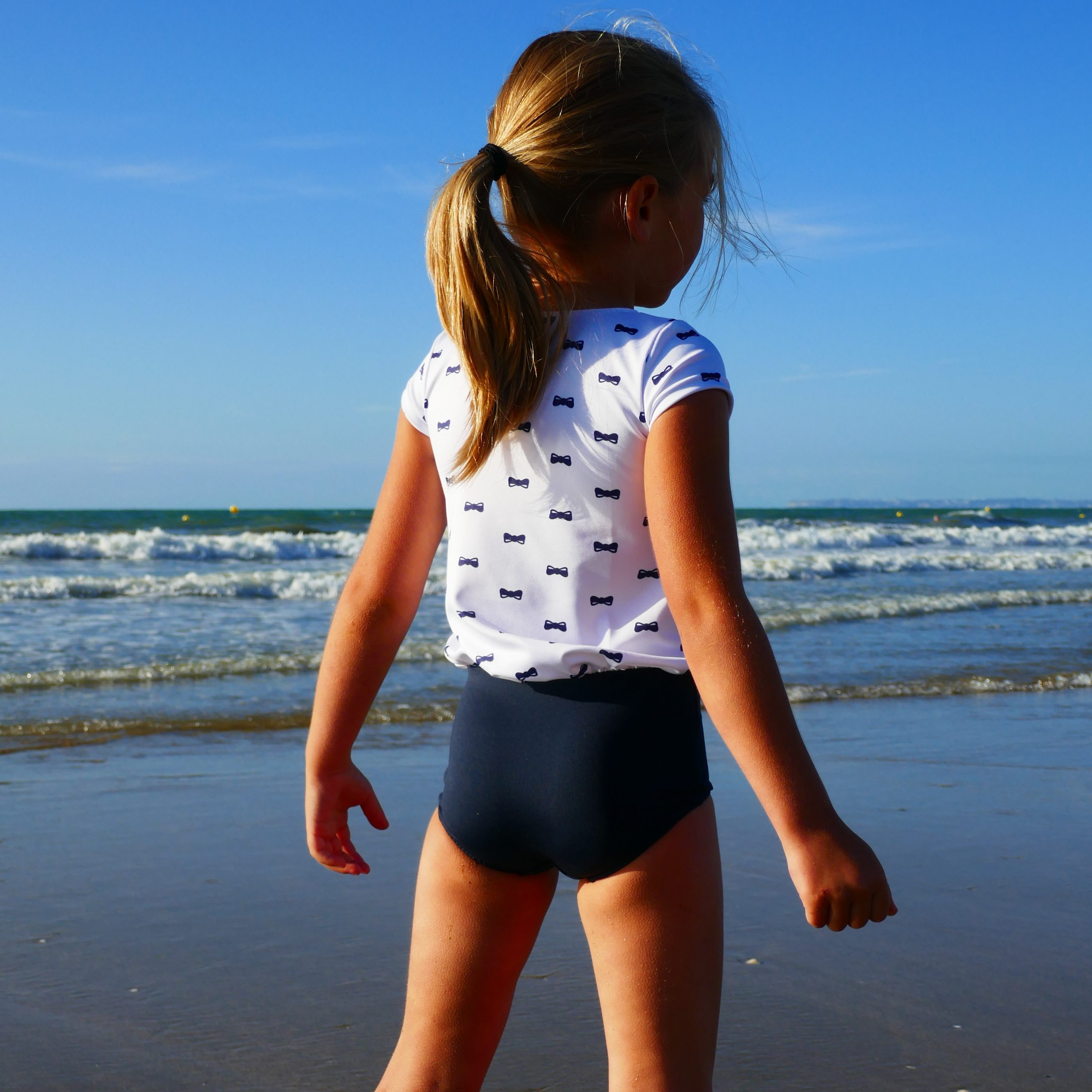 Azura est un patron de maillot de bain 1 pièce anti-UV en lycra pour fille décliné du 2 au 16 ans.