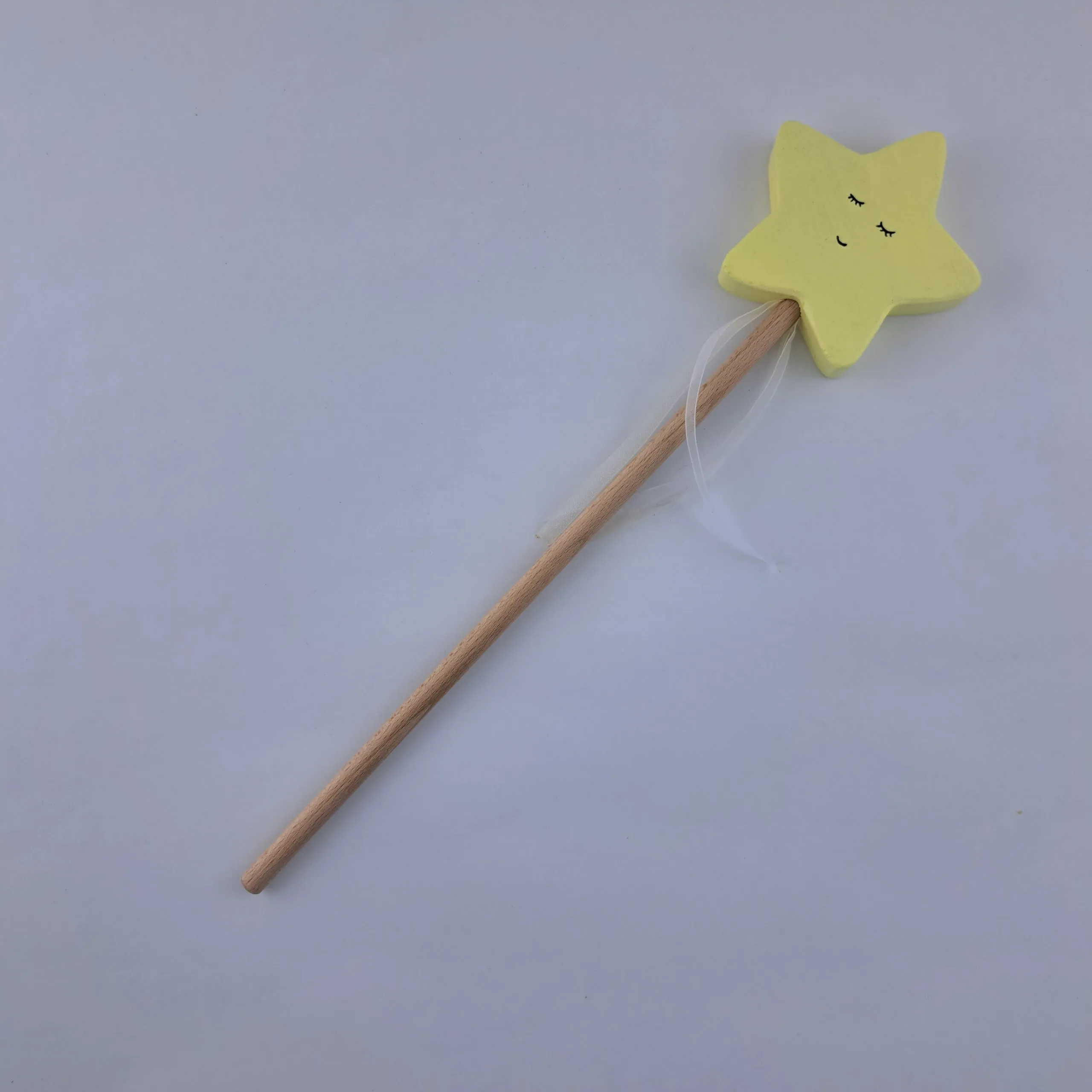 ⭐Baguette de fée en bois – ÉtoileBois verni satinéVisage peint à la mainRuban décoratif fixéStimule imagination et jeu créatifSécurité conforme EN 71-3 ✅Convient dès 5 ans