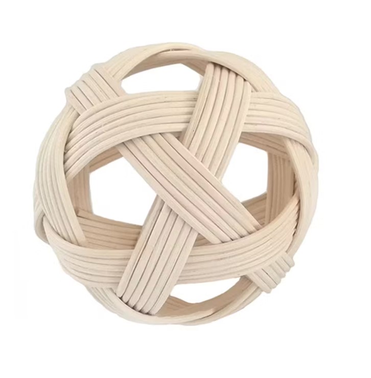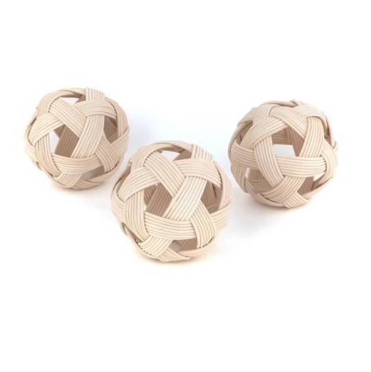 Cette balle est fabriquée à la main avec de la moelle de roseau, sans peinture, ni vernis, ni colle. Solide et résistante, elle ne causera aucune blessure à votre bébé.