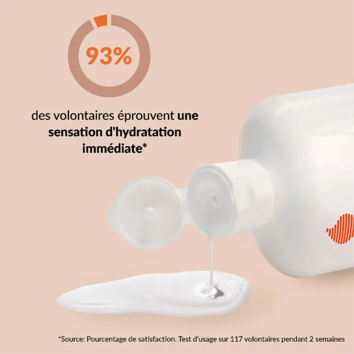 - 93% des utilisateurs ont ressenti une hydratation immédiate et 91% une peau lisse et soyeuse toute la journée*
