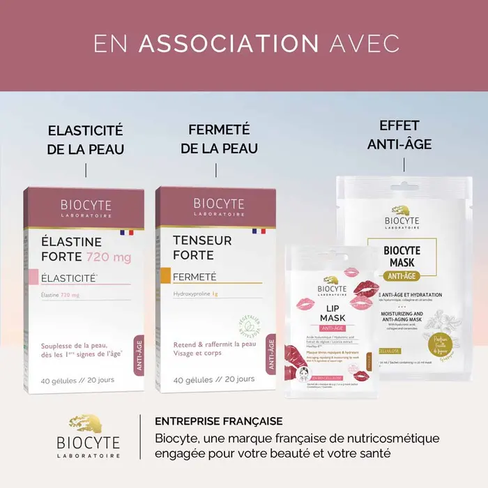 L’innovation Biocyte, du collagène dans un format stick qui vous convient partout. Le collagène est la protéine la plus abondante du corps, il assure la densité et la résistance de la peau. Sa production diminue naturellement avec l’âge.