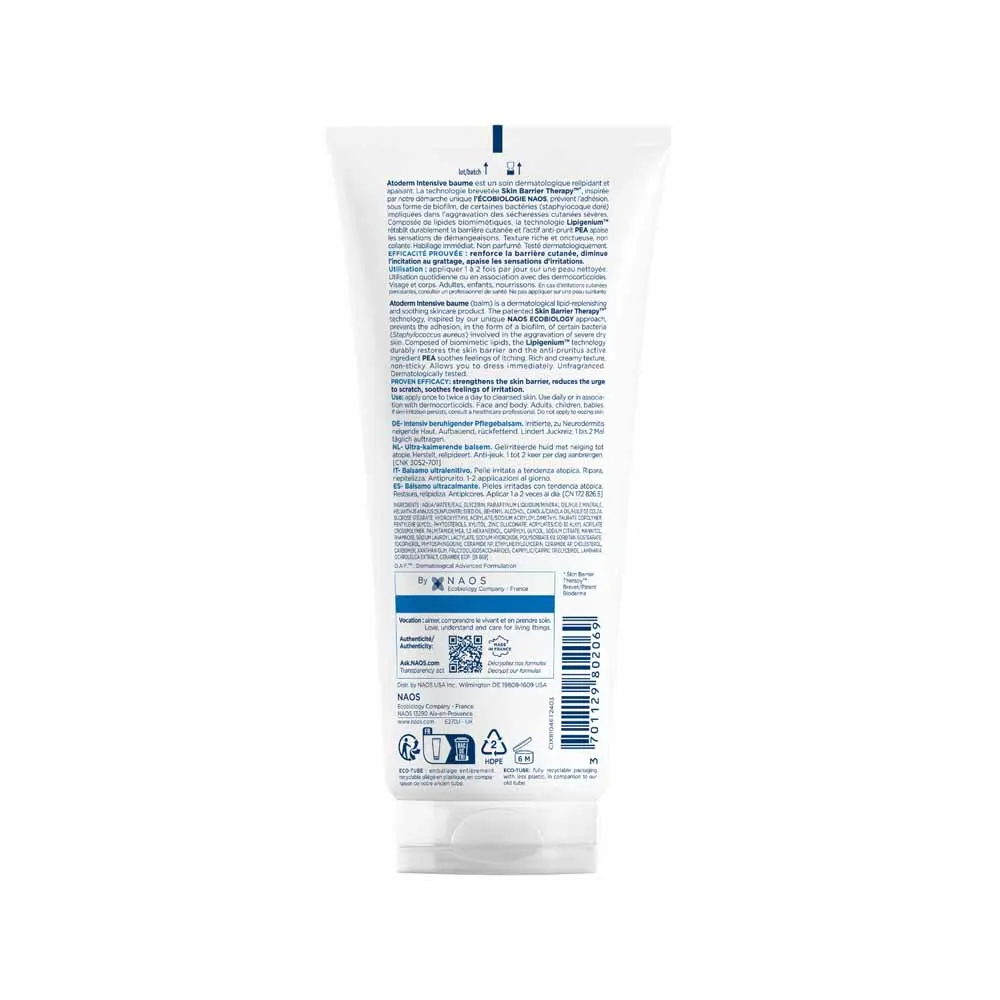 L‘Intensive baume Atoderm pour le corps soulage démangeaisons et sensation de « grattage » grâce à son actif dermatologique anti-prurit PEA. Protecteur, ce baume corporel aide à reconstruire durablement les barrières naturelles de la peau, sous l’action de son complexe exclusif Lipigenium® composé de biolipides naturellement présents dans l’épiderme.