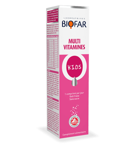 Nos enfants dépensent constamment de l’énergie : à l’école, lors des activités, et tout simplement pour leur croissance. Pour favoriser leur croissance, les Laboratoires Biofar ont développé « Multivitamines Kids », une formule riche et complète au goût naturel de fraise, spécialement conçue pour vos enfants.