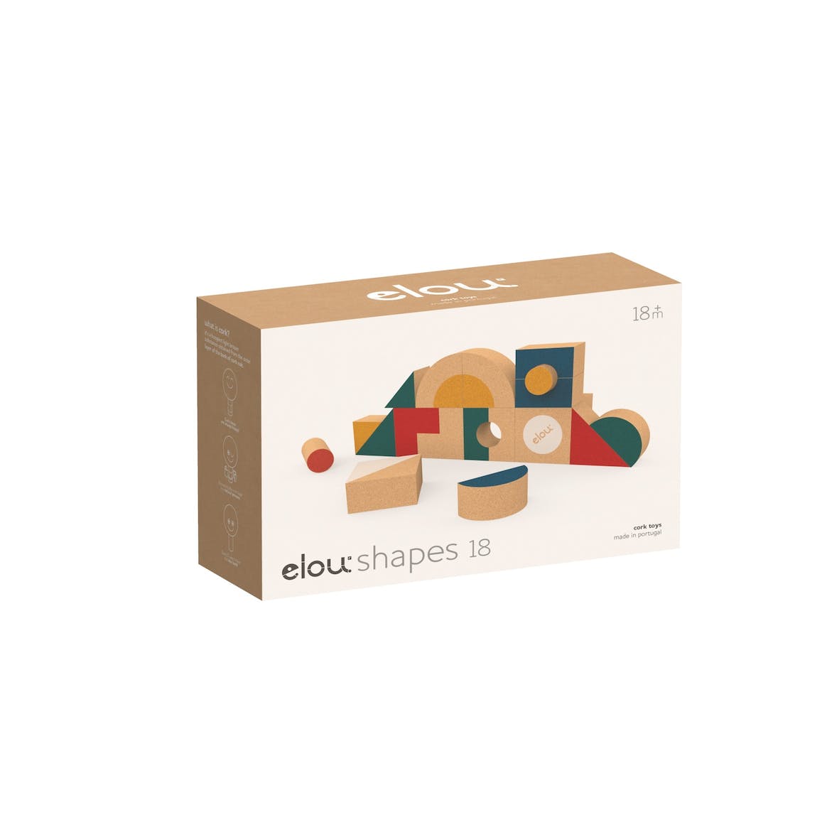 Ces blocs à empiler en bois (liège) de la marque Elou, sont fabriqués au Portugal.