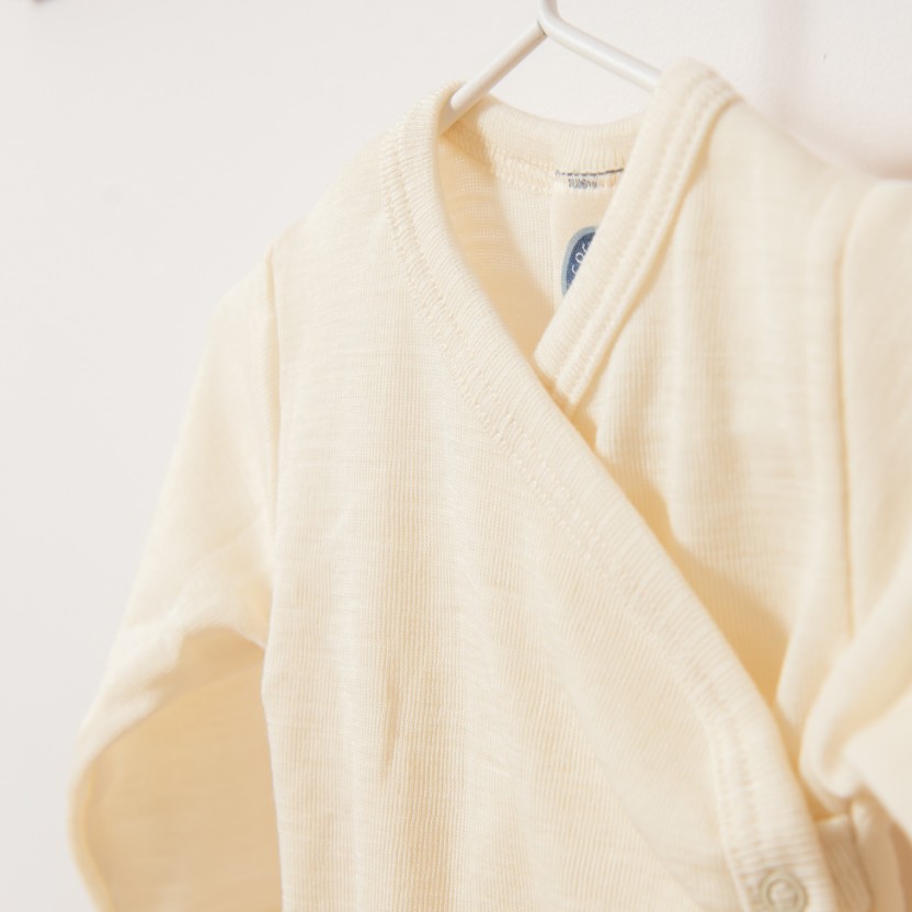 Body croisé manches longues en laine mérinos bio – écru Cosilana