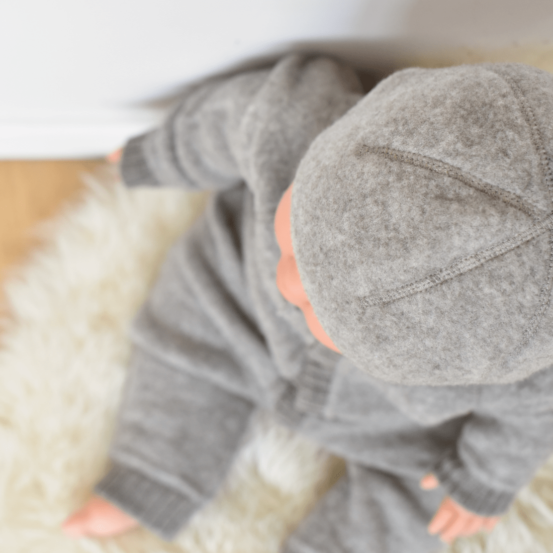 C’est le combo parfait avec la combi-pilote en polaire de laine mérinos de la même couleur taupe, douce et intemporelle.