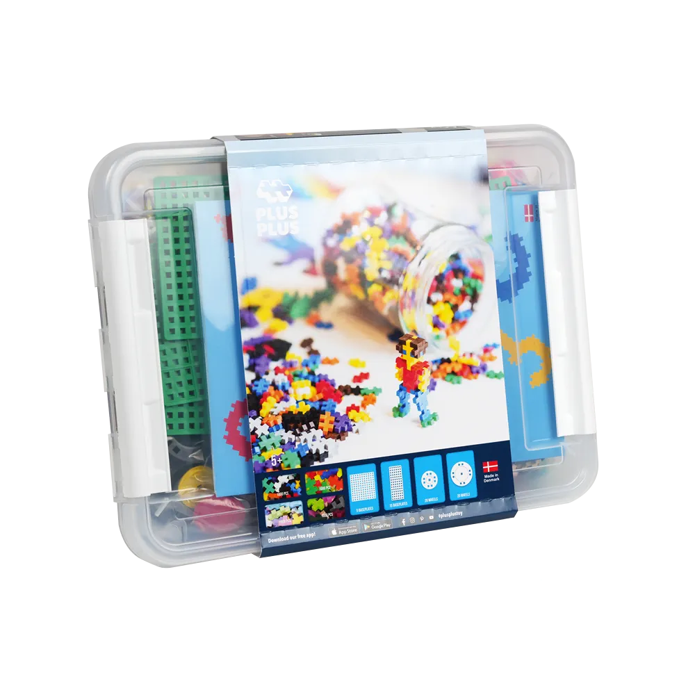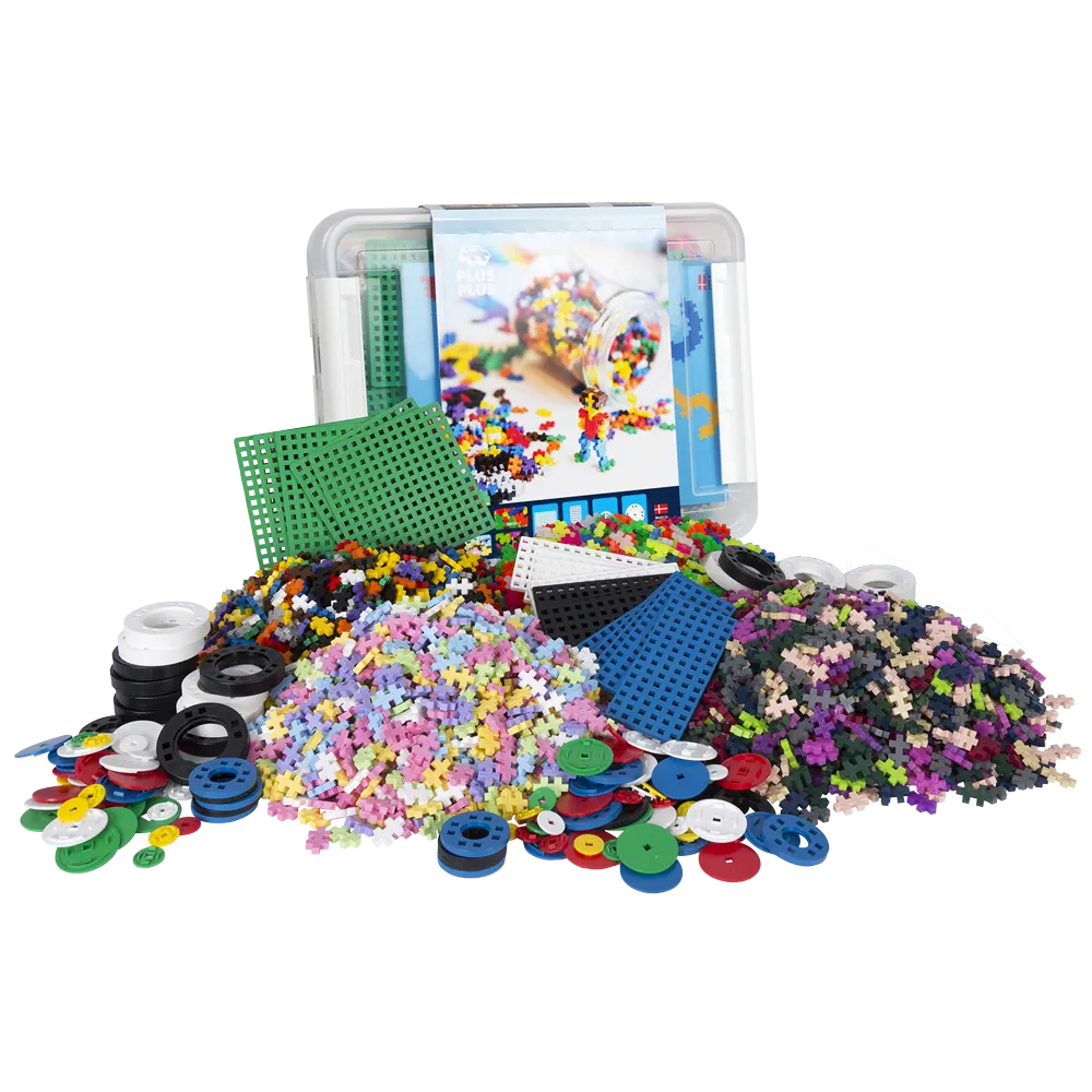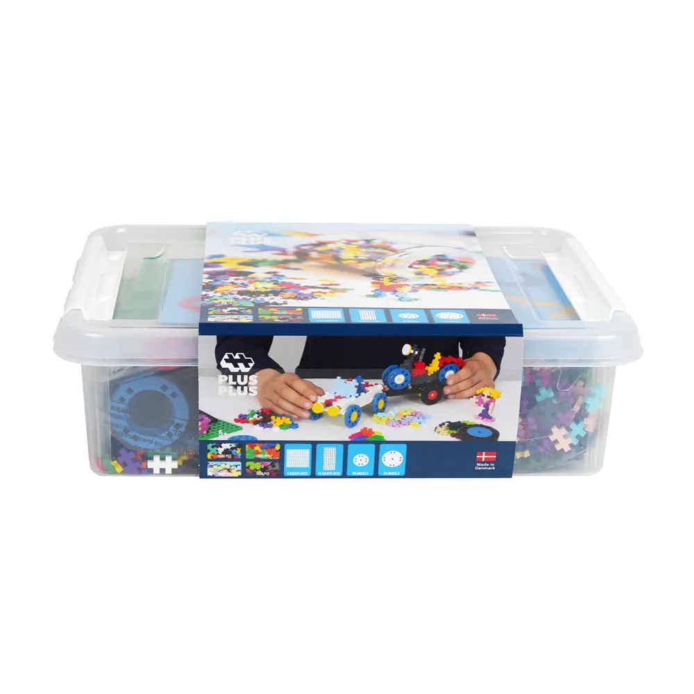 Le top pour les fous du jeu éducatif Plus-Plus ! Tout est là : le coffre de rangement solide, 4000 pièces dans des mix couleurs incroyables ( basic, néon, pastel, spécial), 5 bases de construction, 15 châssis, 20 roues GO et 20 roues GO géantes. On aime : le guide d’inspirations qui vous accompagne dans la réalisation de véhicules et les supports pédagogiques d’apprentissage (lettres et nombres). Un kit complet pour découvrir la marque, créer, s’amuser, imaginer en 2D et 3D. Conseillé dès 5 ans.