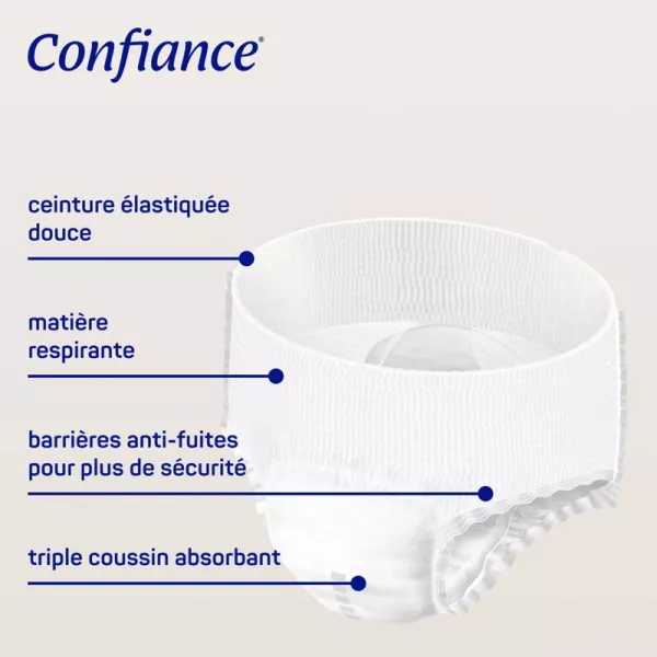 Utilisez les sous-vêtements absorbants Confiance Mobile sur peau propre et sèche.