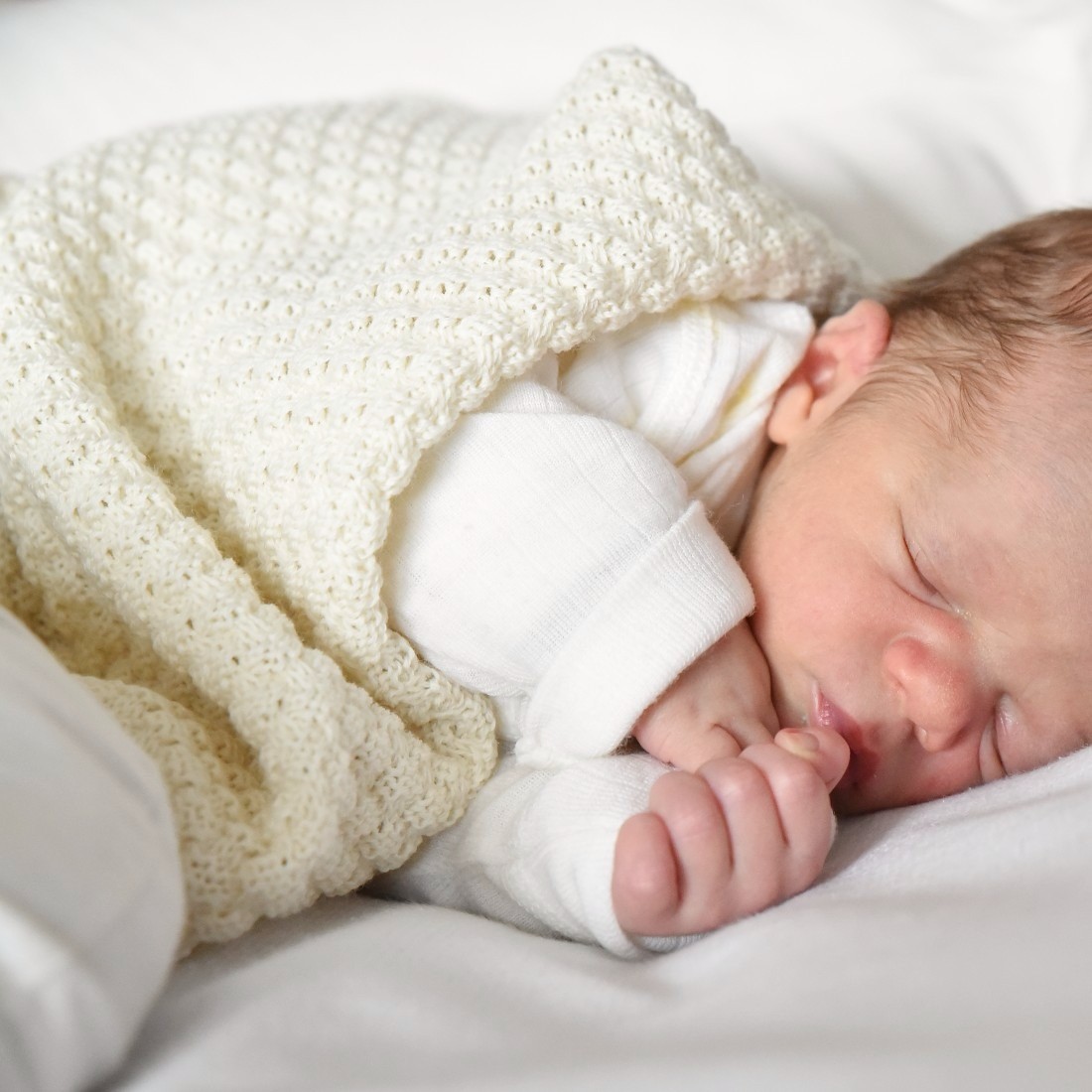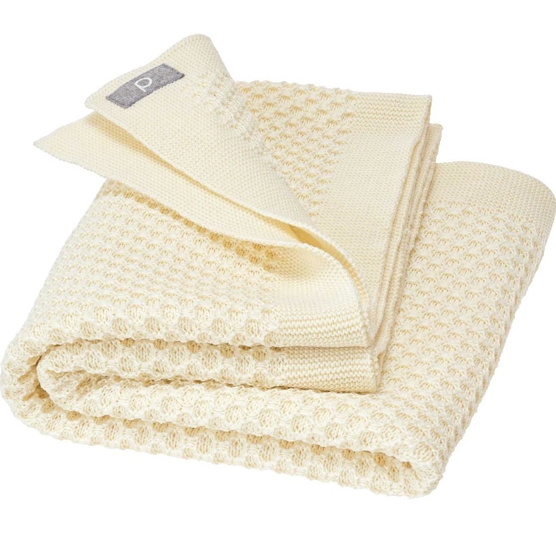 Couverture bébé en laine mérinos bio (maille nid d’abeille) – écru Disana