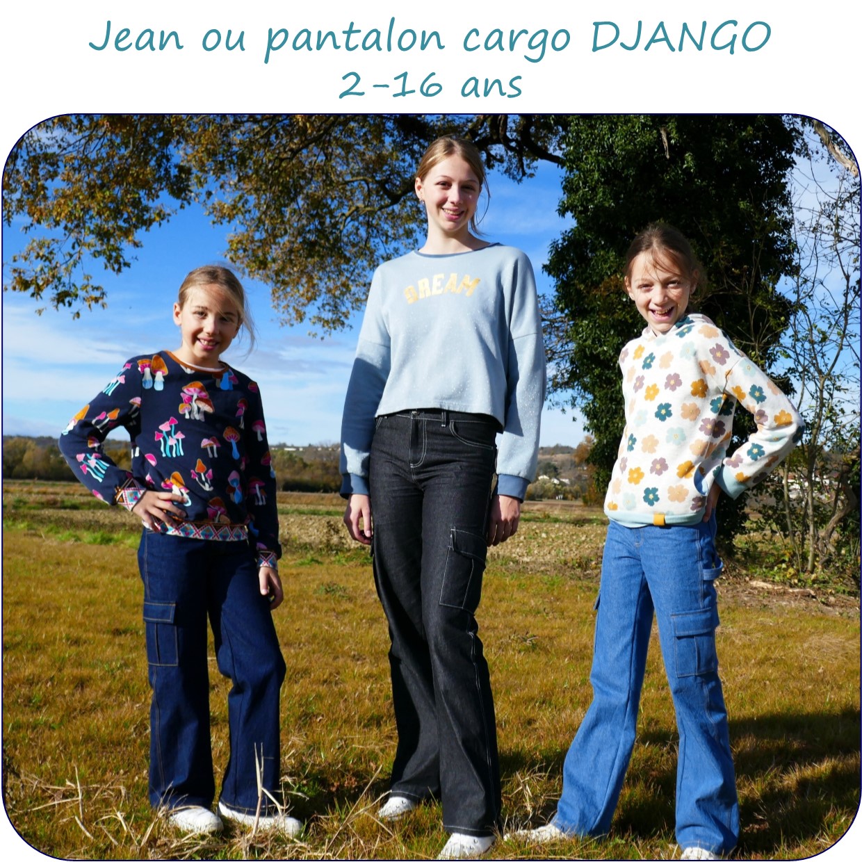 DJANGO – patron de jean ou pantalon cargo pour fille du 2 au 16 ans