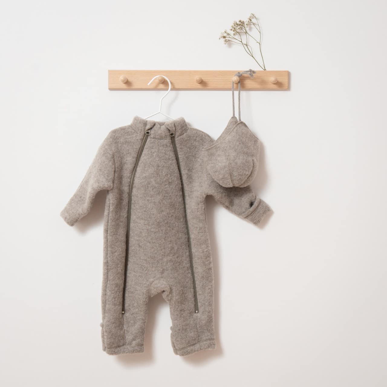 Voici LE combo parfait pour bien équiper bébé lors des balades. L’ensemble assorti combi-pilote et bonnet en polaire de laine mérinos bio est bien chaude, couvrante, respirante et souple, idéal pour les permiers mois de votre p’tit loulou.