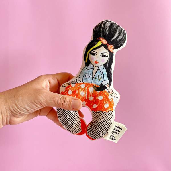 Le hochet bébé star est disponible en plusieurs versions : Amy Winehouse, Orelsan, Mozart, John Lennon, Freddie Mercury, M.Jackson mode jackson five, M.