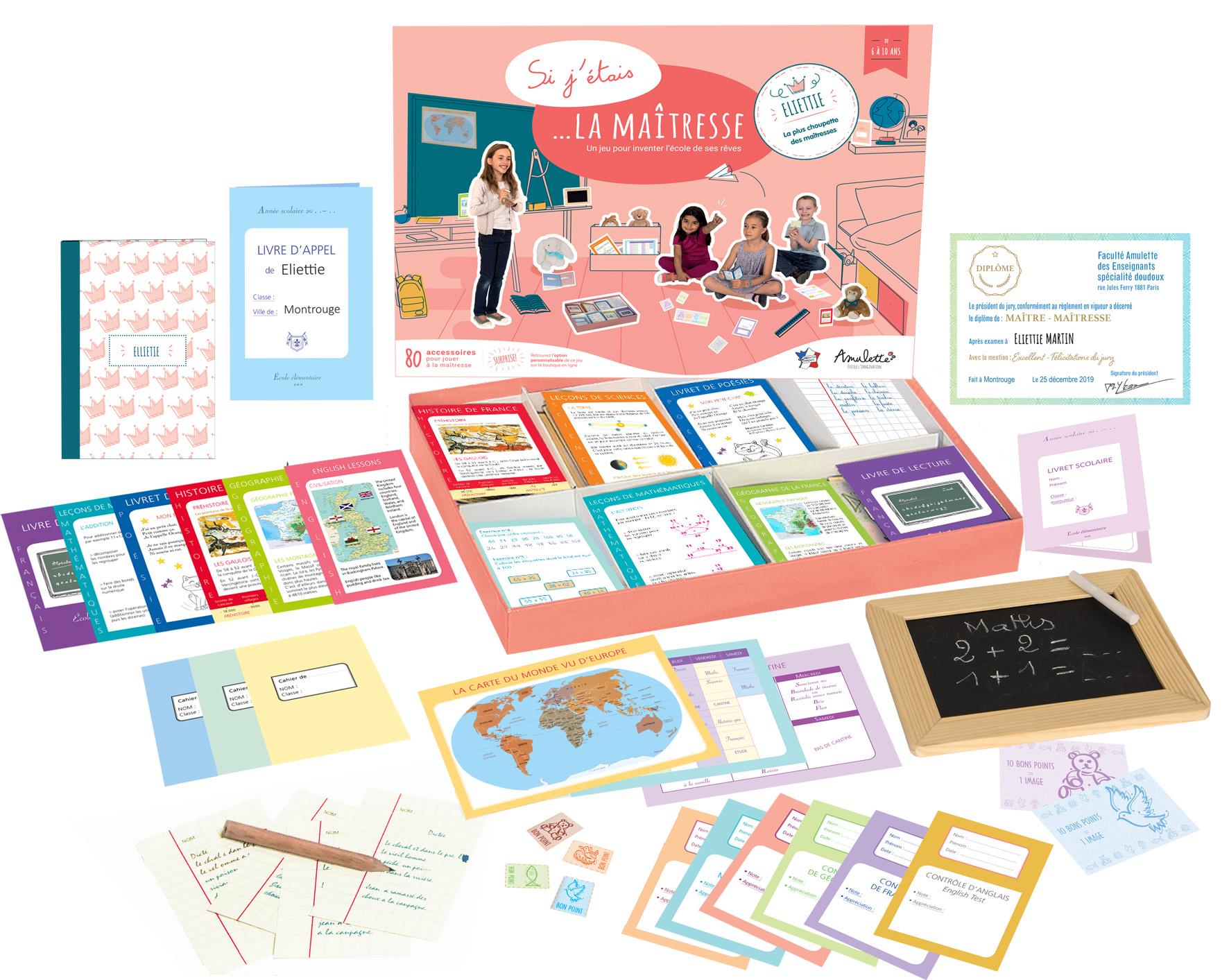 Pour ne rien retirer à son charme, ce jeu pour jouer à la maîtresse est fabriqué en France à partir de matières éco-responsables. La marque Amulette utilise uniquement des papiers issus de forêts renouvelables et imprime ses accessoires via un imprimeur labellisé ImprimVert.