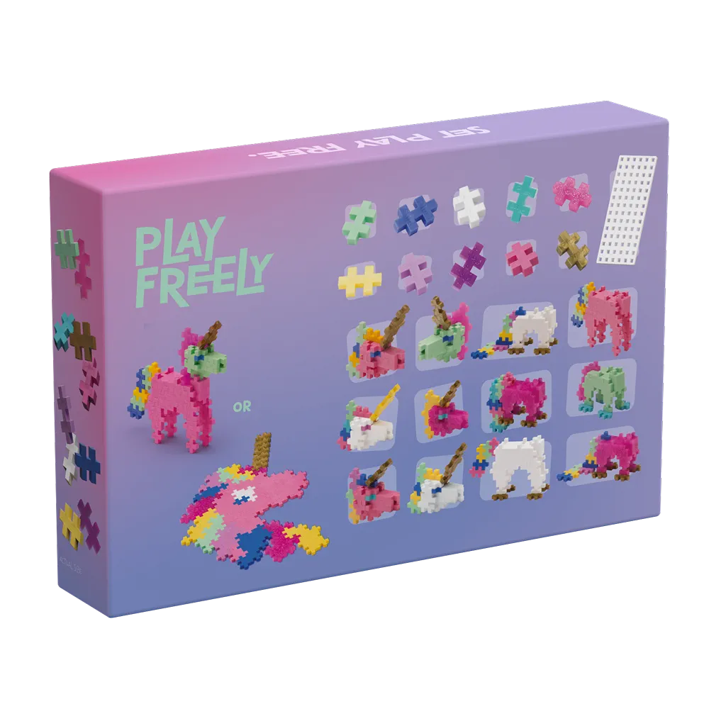 WHAOU! Et si vous appreniez à faire une licorne en Plus-Plus ? Facile avec ce kit de jeu créatif qui vous accompagne dans la création d’un univers magique et la construction en 2D et 3D de licornes ! Il contient : 275 pièces de Plus-Plus CLASSIC (20 mm et 9 coloris), 1 base de construction et une notice de montage. Amoureux de la féérie, vous allez adorer ce set ! Conseillé aux enfants de plus de 5 ans.