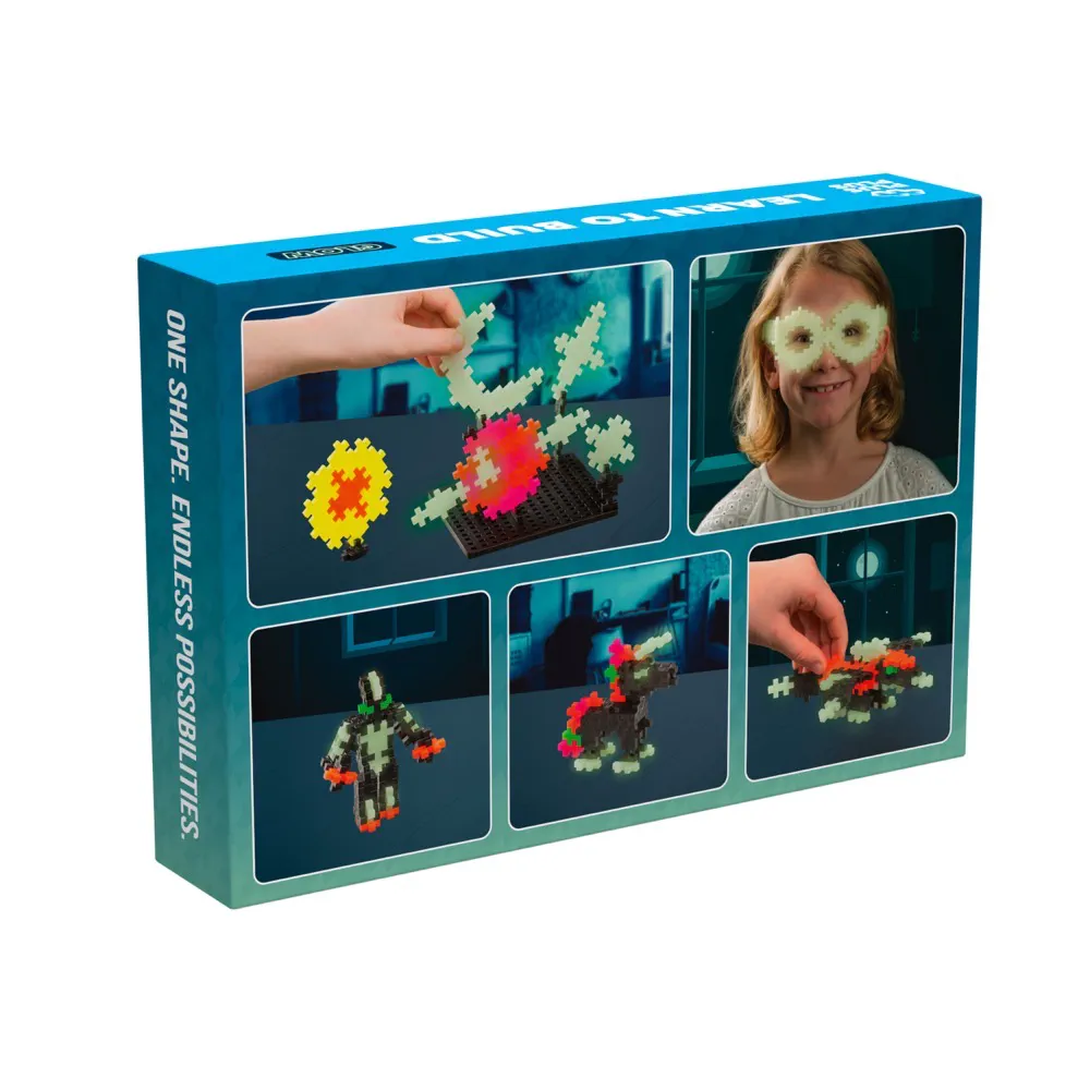 Le kit découverte phosphorescent Plus-Plus offre aux enfants la possibilité de fabriquer des personnages qui brillent dans le noir : robot, petit bonhomme, fantôme ou encore animaux fantastiques (licorne, dragon…). Ils pourront également créer des objets originaux comme des lunettes ou encore se créer un univers rempli d’étoiles, de planètes et de lunes ! Le set contient 340 pièces de Plus-Plus néon CLASSIC, 150 pièces de Plus-Plus phosphorescents CLASSIC, 2 bases de construction noires et un livret avec des modèles de constructions.
