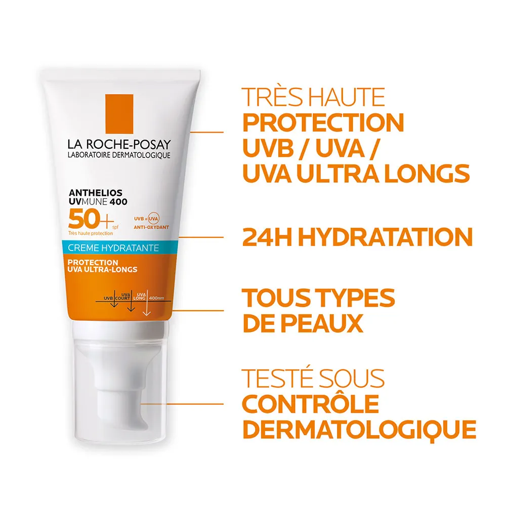 La crème Anthelios UVMune 400 SPF50+ est destinée aux adultes et aux enfants à partir de 10 ans. Pour les plus jeunes, mieux vaut choisir une protection solaire spécialement formulée pour la peau fragile des enfants. En cas de doute, demandez conseil à un professionnel de santé ou à votre pharmacien.