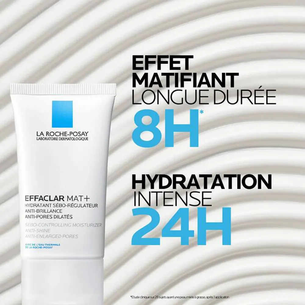 Découvrez Effaclar Mat+ de La Roche Posay, la crème hydratante visage sébo-régulatrice pour les peaux sensibles grasses, qui réduit les pores, le flux de sébum et fait durer la matité.