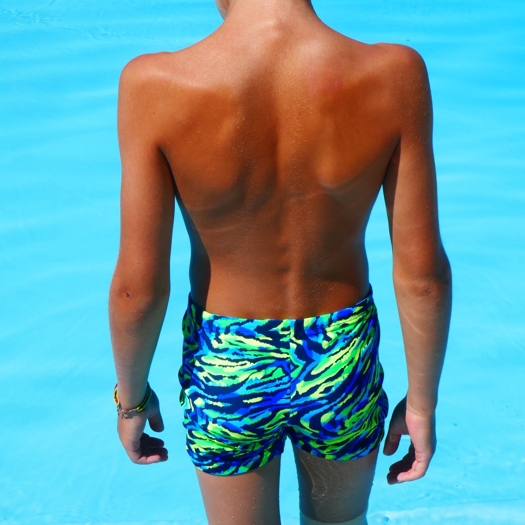 Largo est un patron de maillot de bain pour garçon en lycra décliné du 2 au 16 ans.