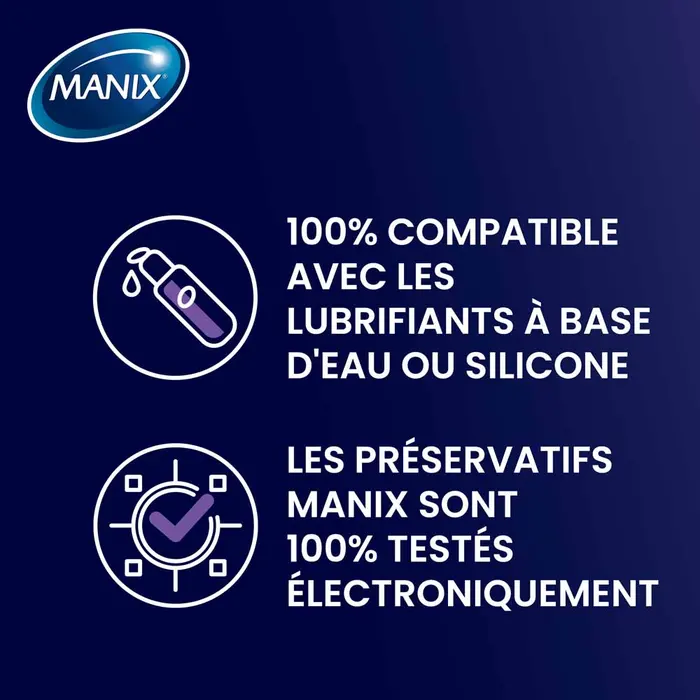 Chaque préservatif Manix King Size Max XL est testé électroniquement à 100 % et conforme aux normes de qualité les plus strictes pour garantir protection et sérénité. Livré dans un emballage discret, il offre une expérience intime sûre et agréable. Avec plus de 30 ans d’expertise, Manix est reconnue comme une marque de confiance dans le domaine du bien-être sexuel, alliant innovation, sécurité et plaisir pour une sexualité libre et exaltée.