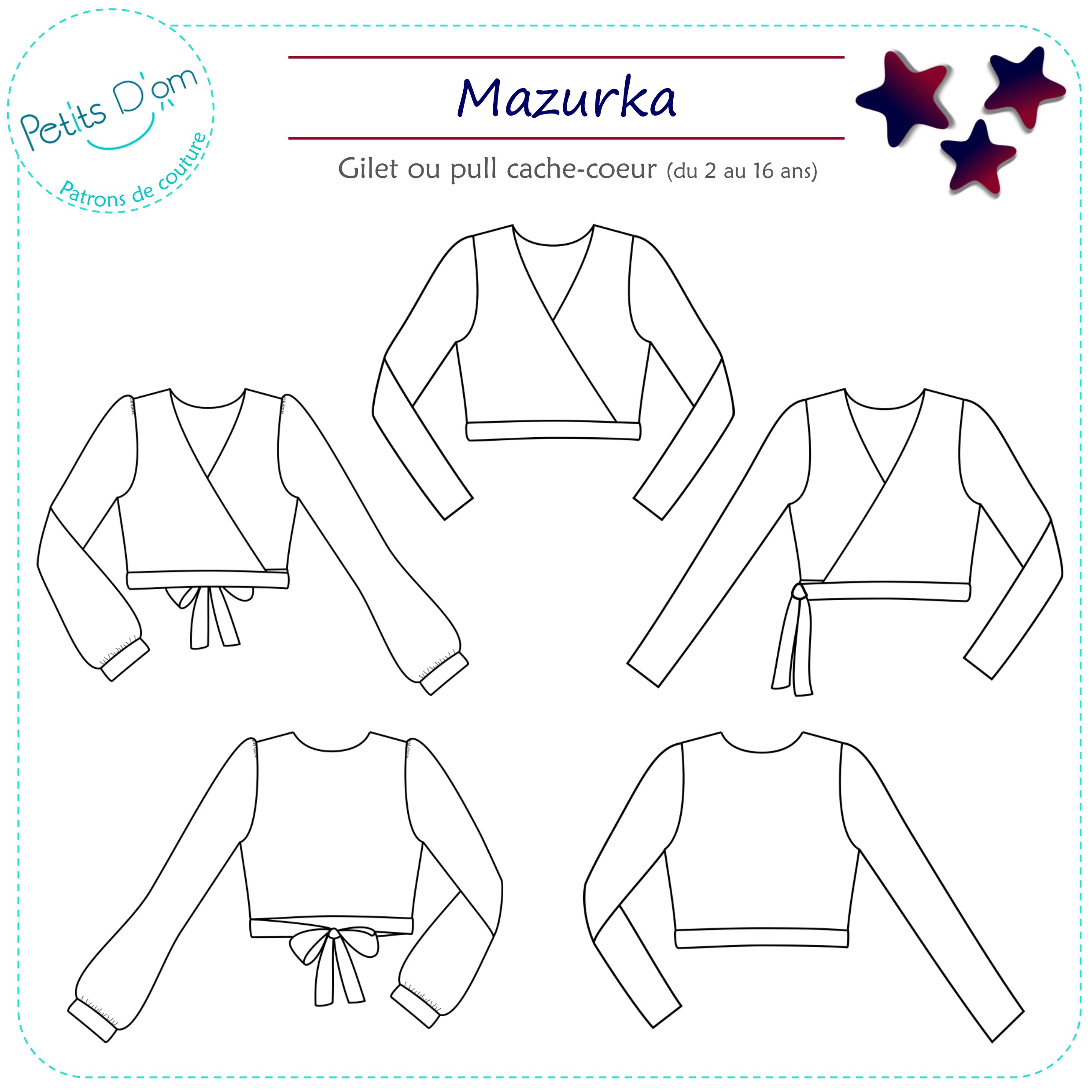 MAZURKA – patron de gilet ou pull cache-cœur pour fille du 2 au 16 ans