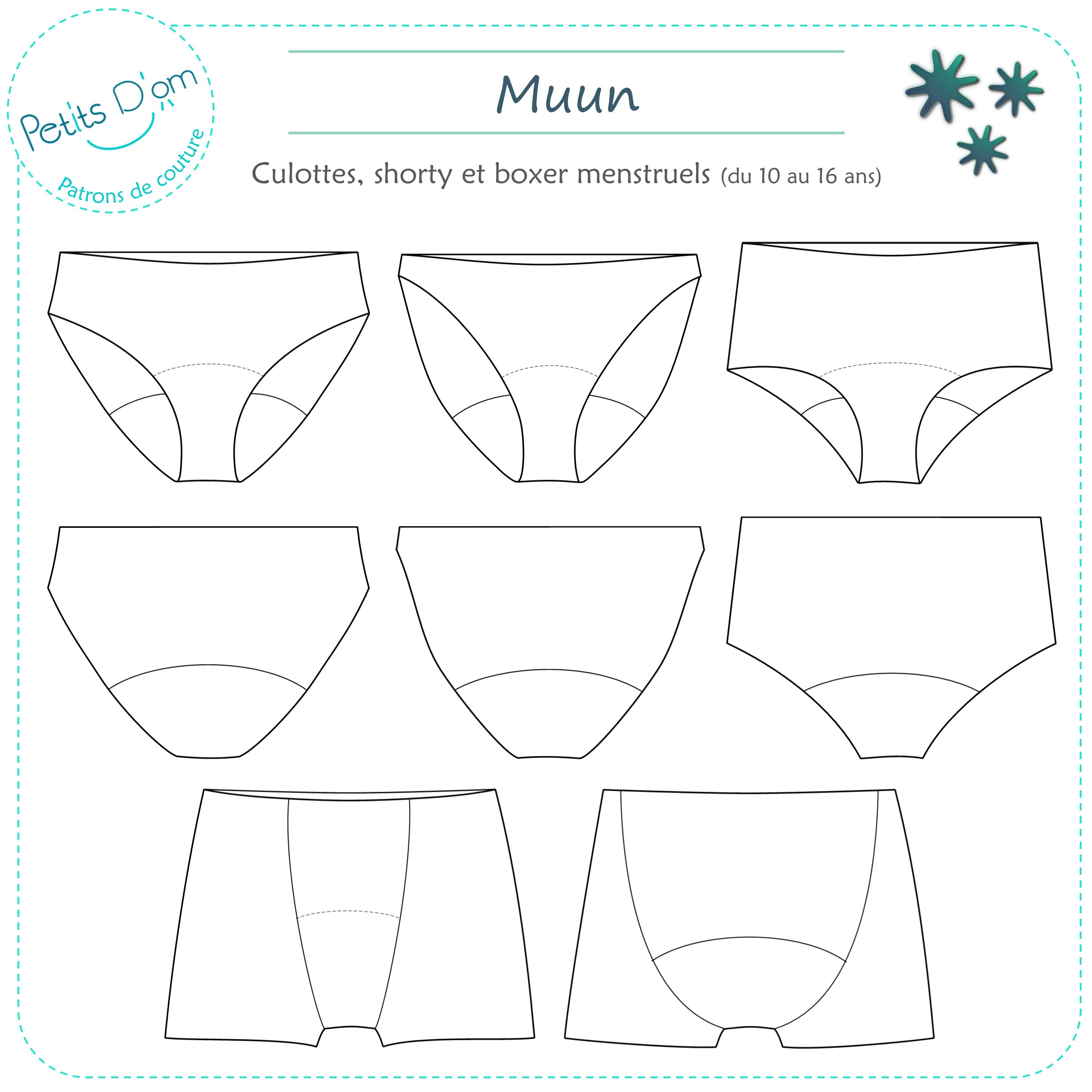 MUUN – patron de culottes, shorty et boxer menstruels du 10 au 16 ans