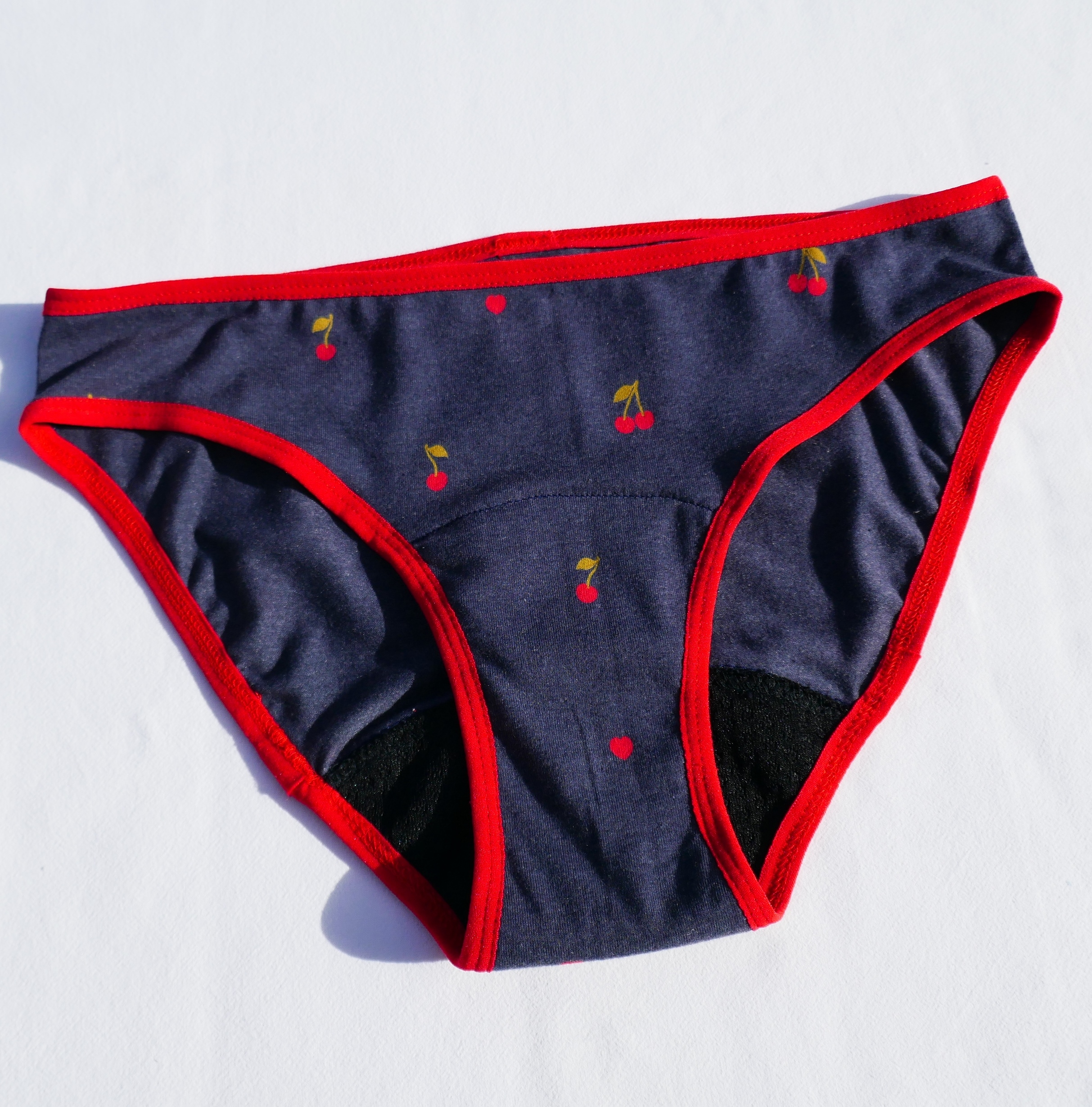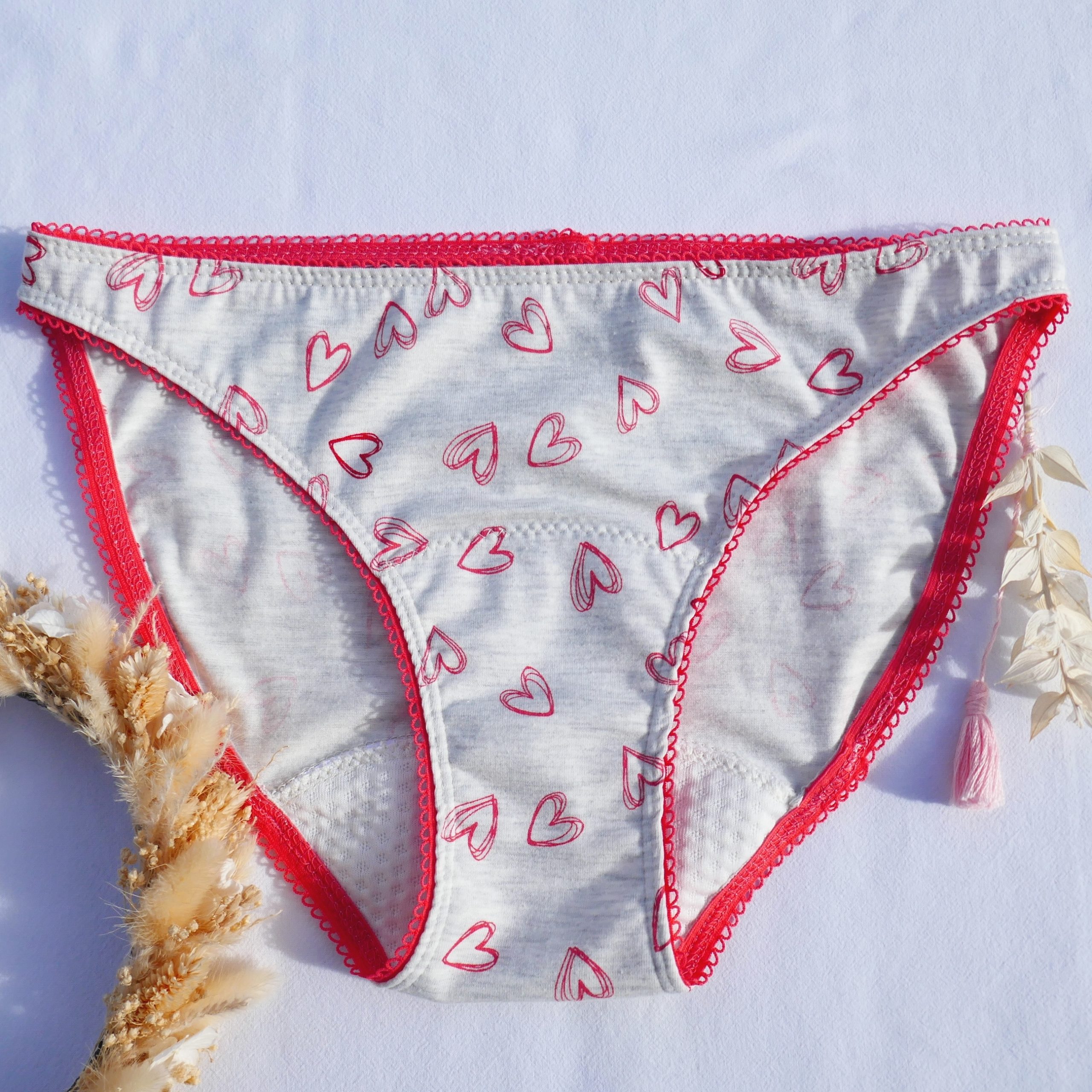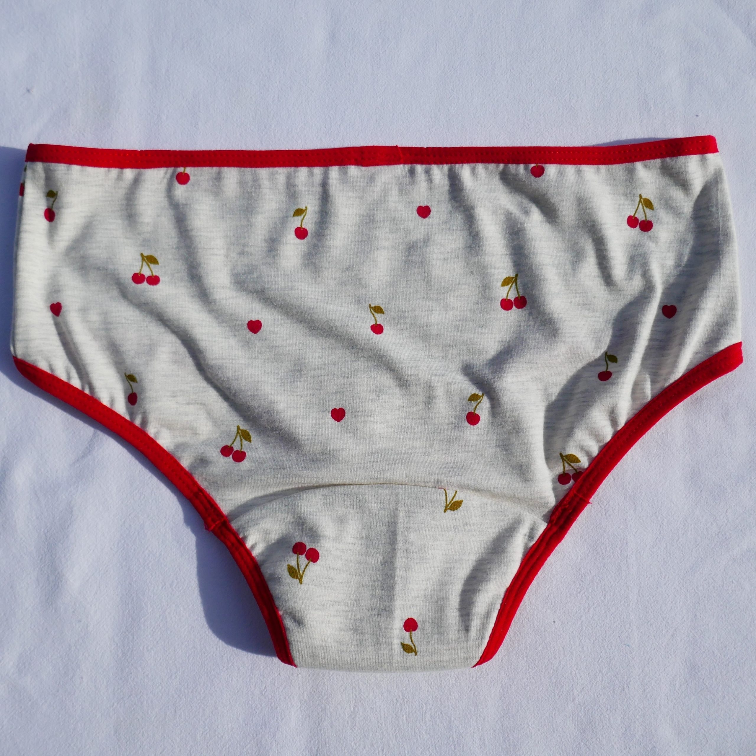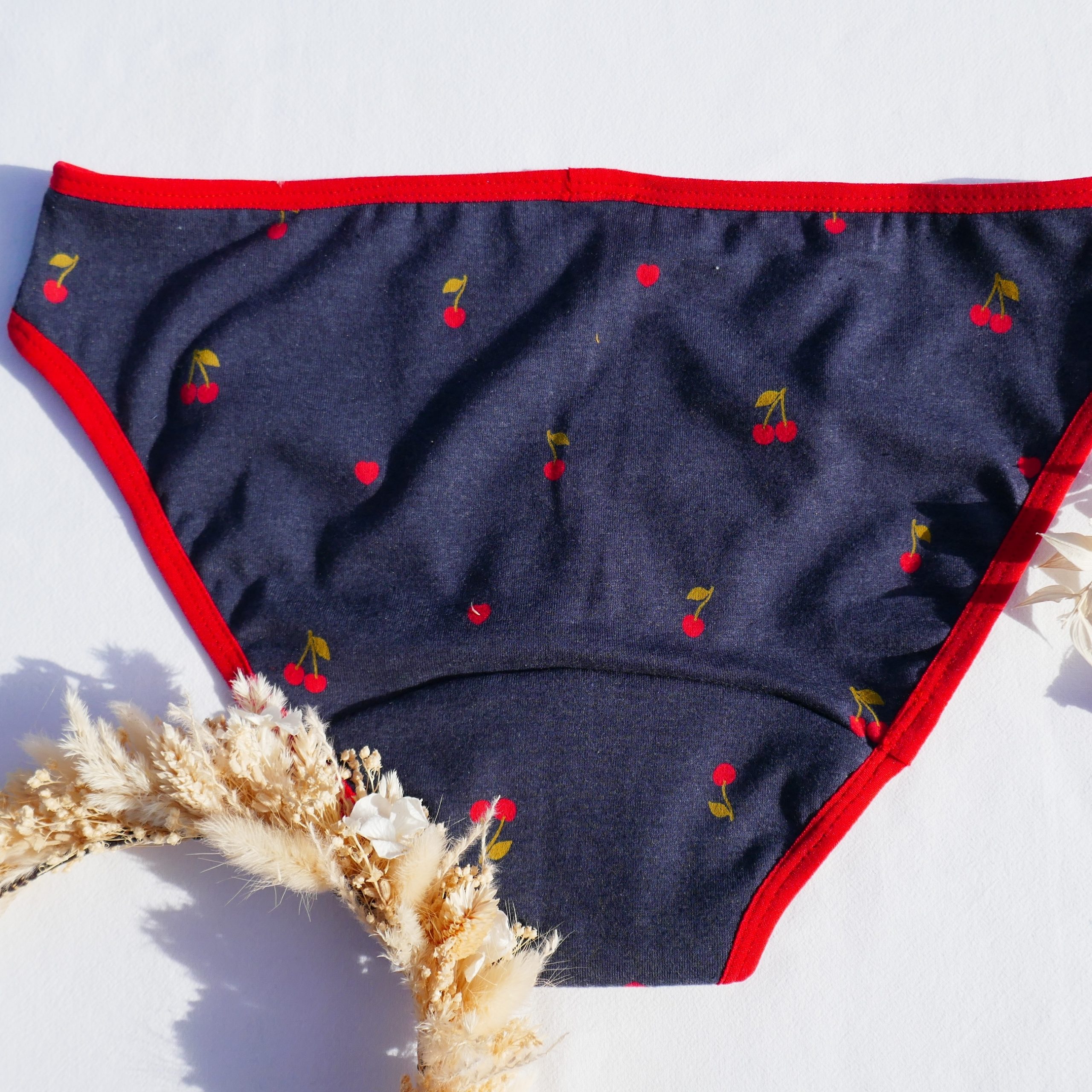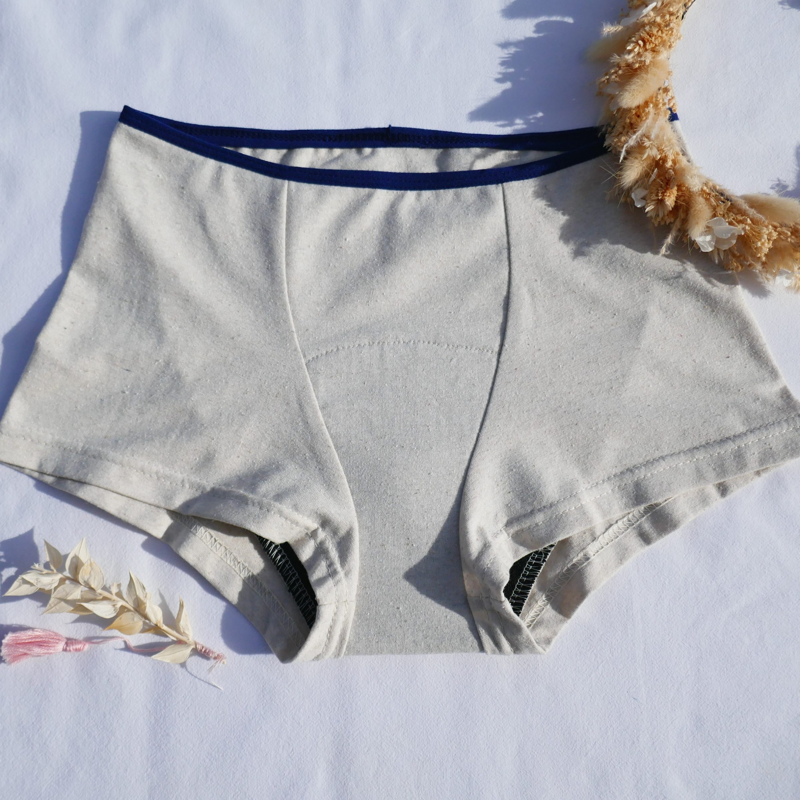 Patron de couture au format papier (patron pochette 18 x 22 x 1 cm envoyé à domicile) ou PDF (téléchargement numérique instantané). Patron de culottes, shorty et boxer menstruels du 10 au 16 ans. Purchase the pattern in English on Etsy or The Foldline.