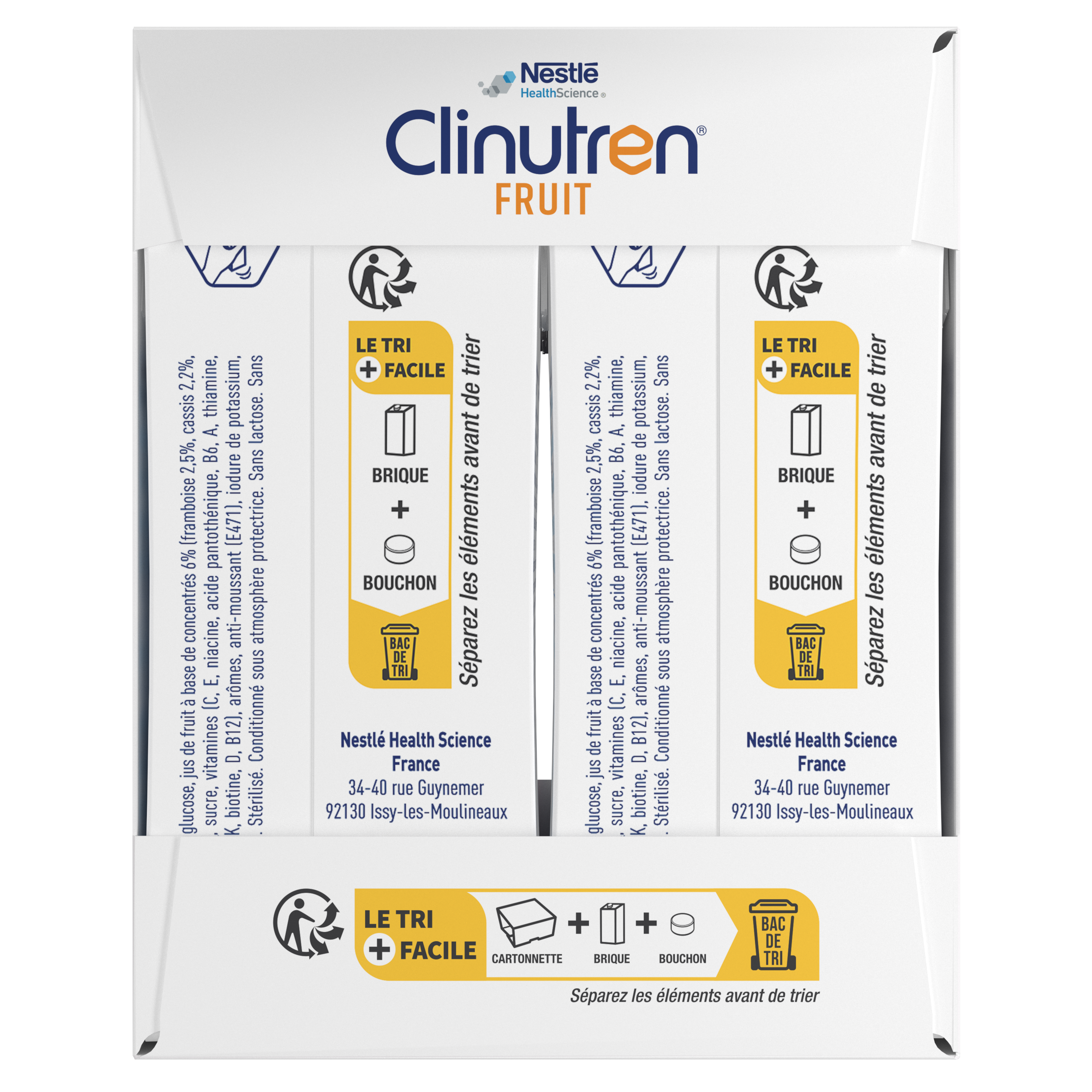 Clinutren® Fruit est un complĂ©ment nutritionnel oral indiqué pour les besoins nutritionnels des patients adultes en cas de dĂ©nutrition. Boisson fruitĂ©e hyperĂ©nergĂ©tique avec concentrĂ©s de jus de fruits et arĂ´mes. Convient aux enfants de plus de 3 ans.  300 kcal I 200 ml Les + produit : Conditionnement : 4 bouteilles de 200 ml Boisson fruitĂ©e Ă base de concentrĂ©s de […]