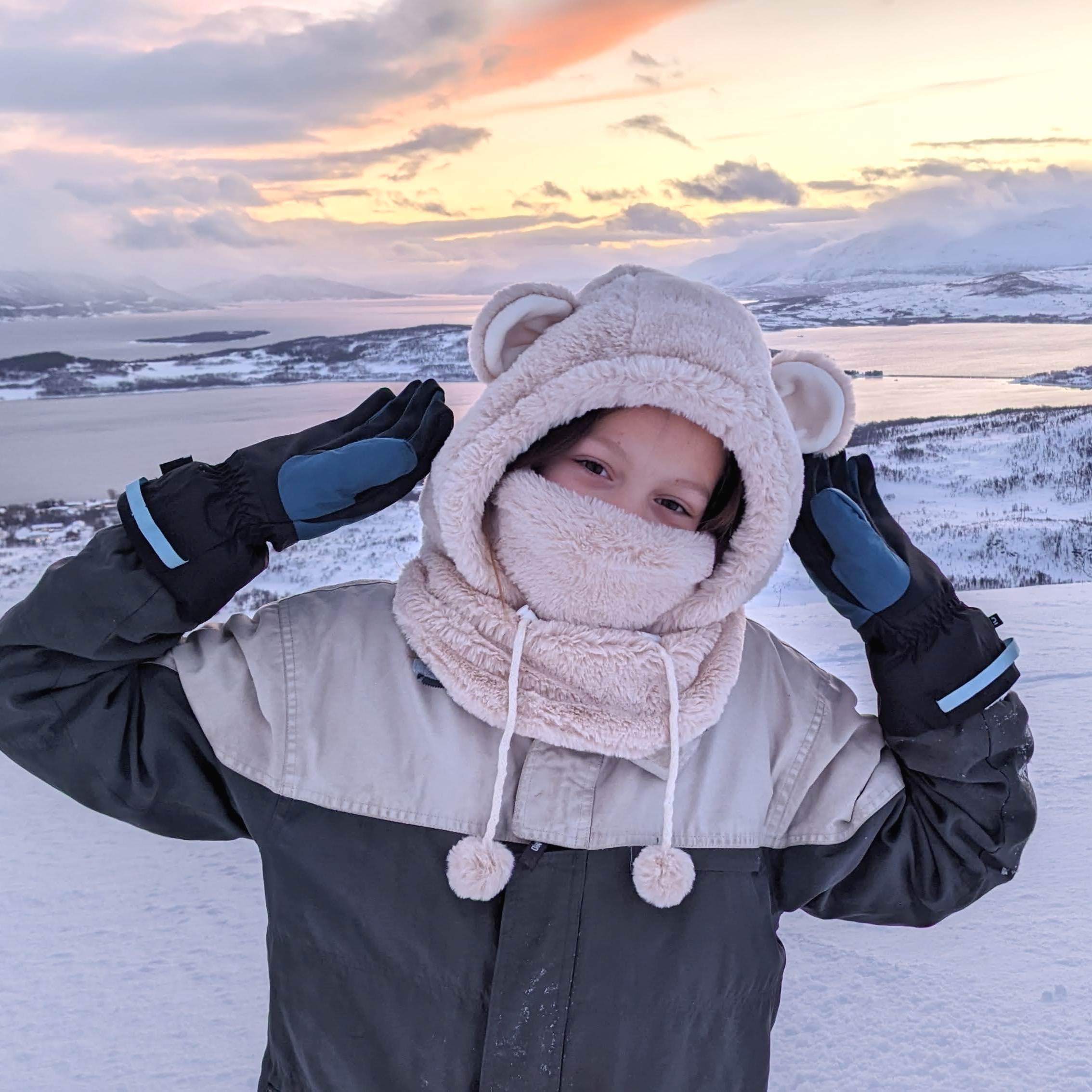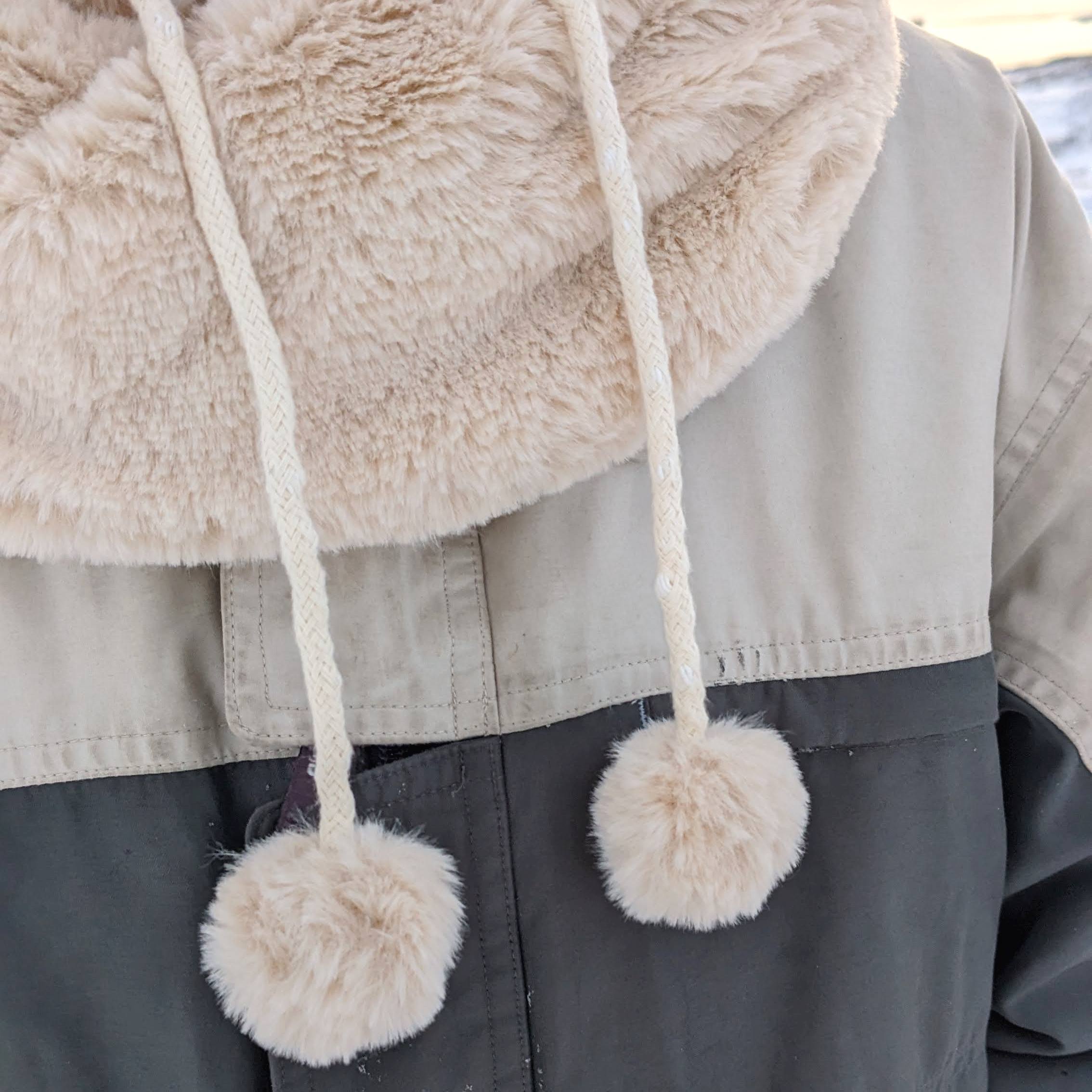 Vous pouvez coudre des petites oreilles d’ours sur la capuche. Son ouverture peut se resserrer avec un cordon pour une protection maximale contre le froid. Ajoutez un stop-cordon ou un pompon aux extrémités. La capuche peut être doublée ou non, la version doublée permettant d’affronter des températures de -15°C environ.