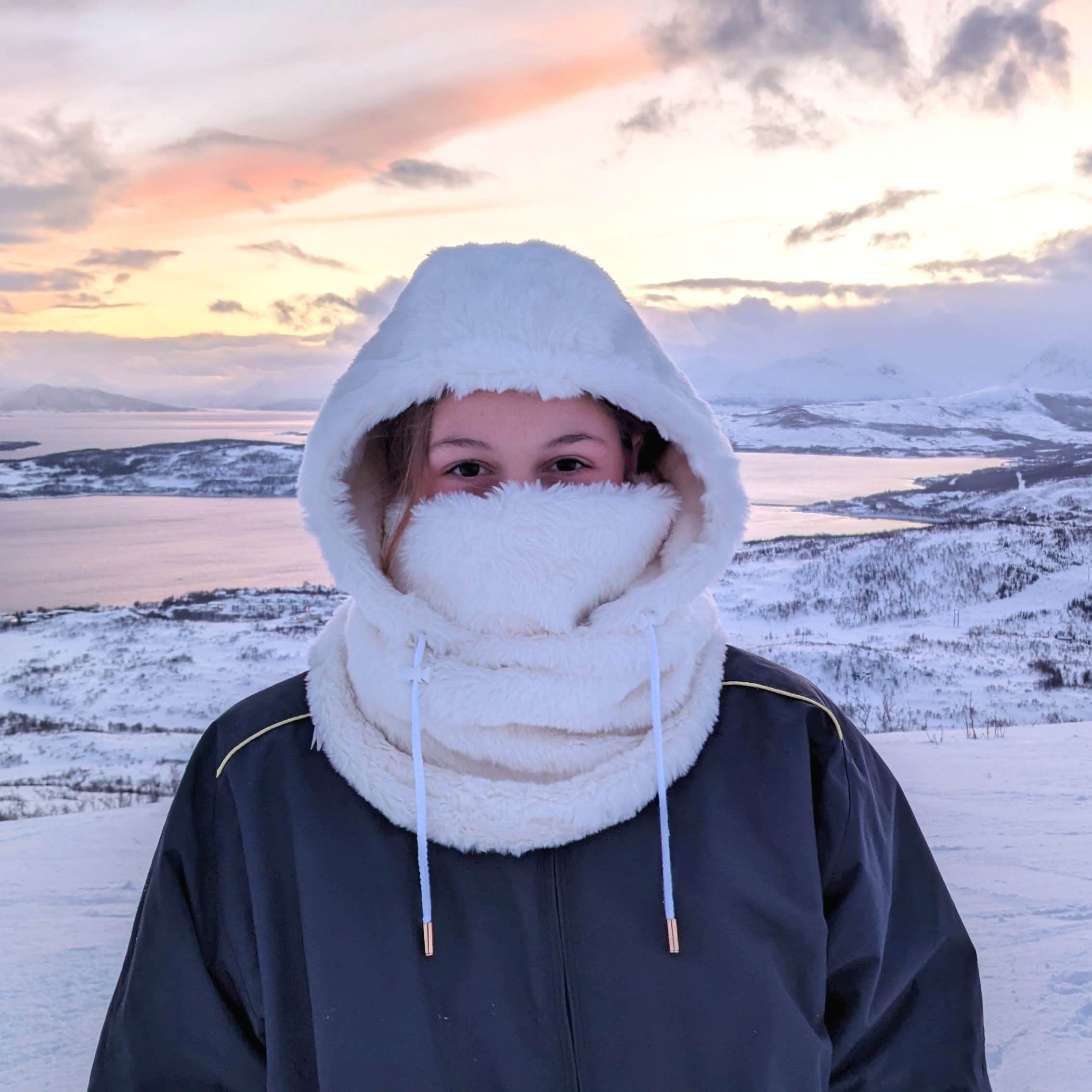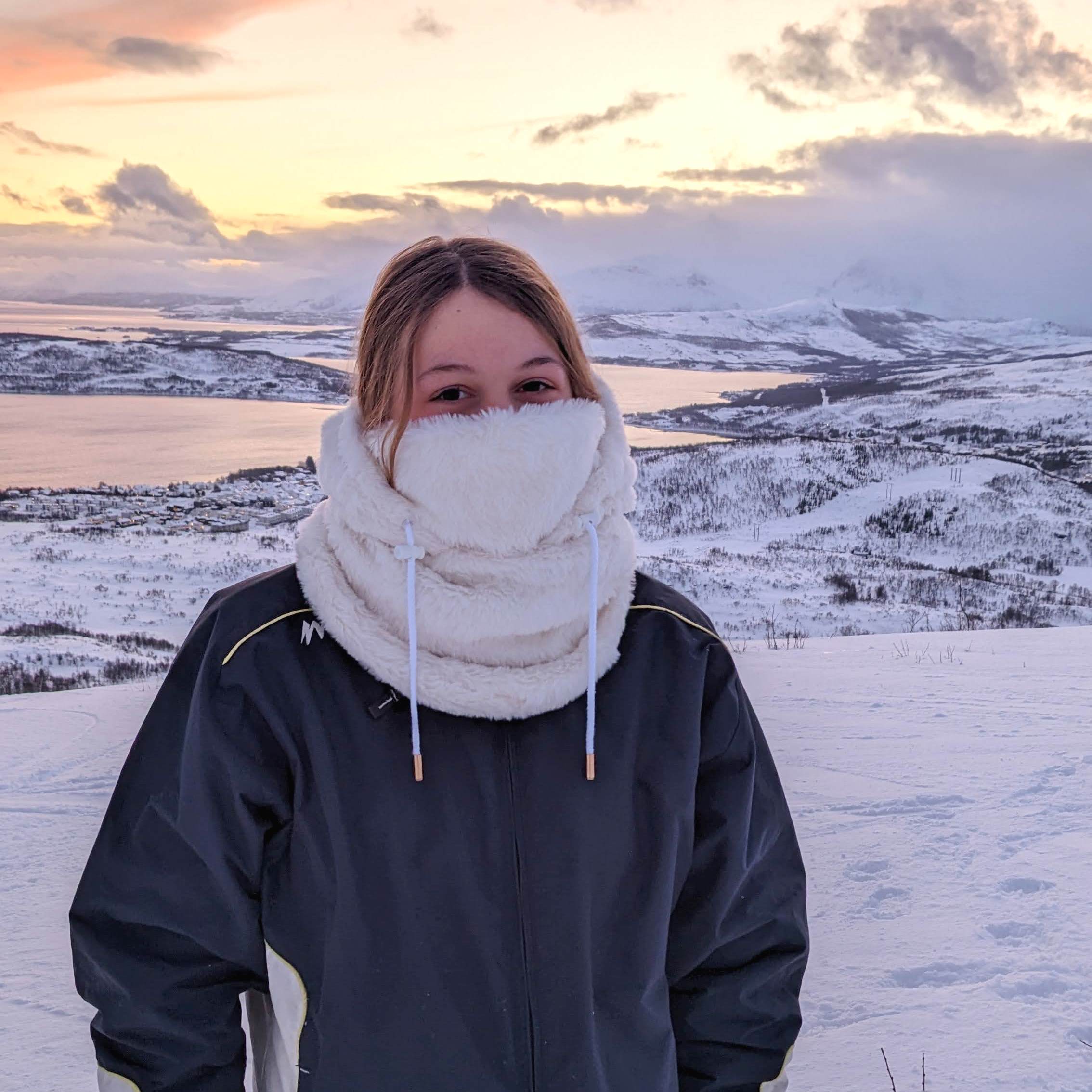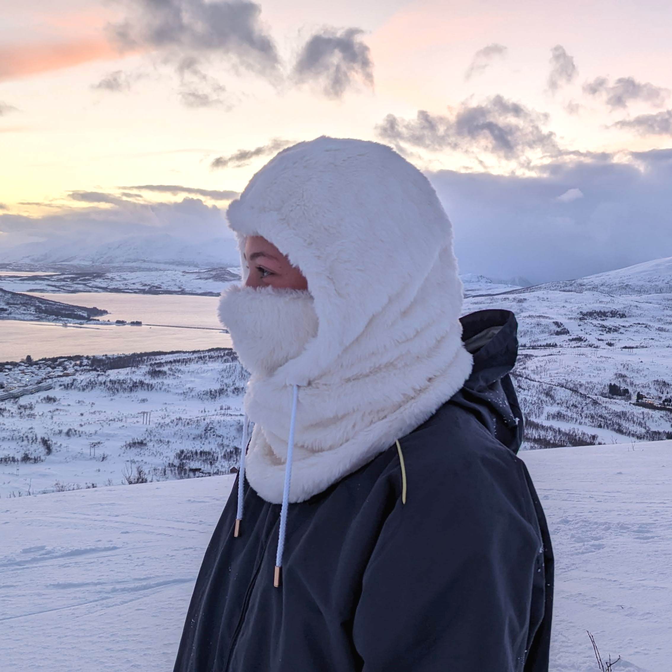 Le snood est bien couvrant, il descend assez bas sur le haut du buste et peut se remonter pour couvrir la bouche et le nez. Il se coud avec ou sans capuche.