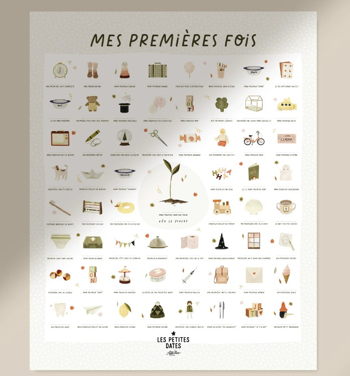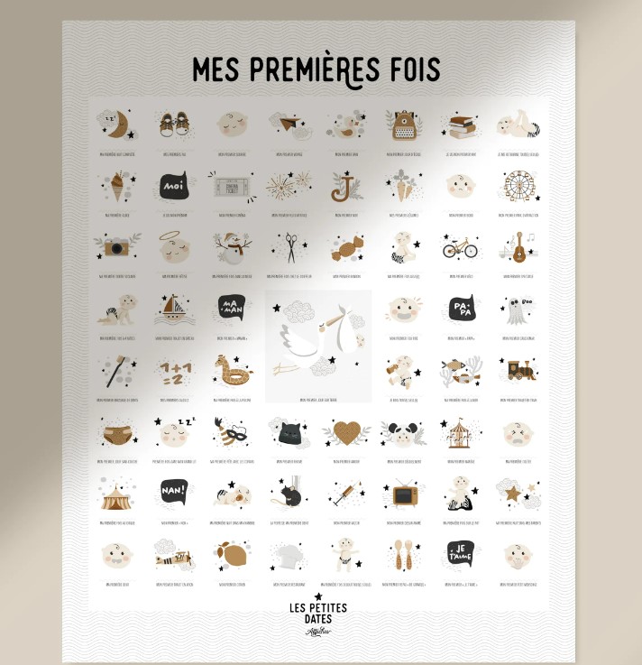 - L’indémodable et basique affiche « mes premières fois » illustrée par Les petites dates.