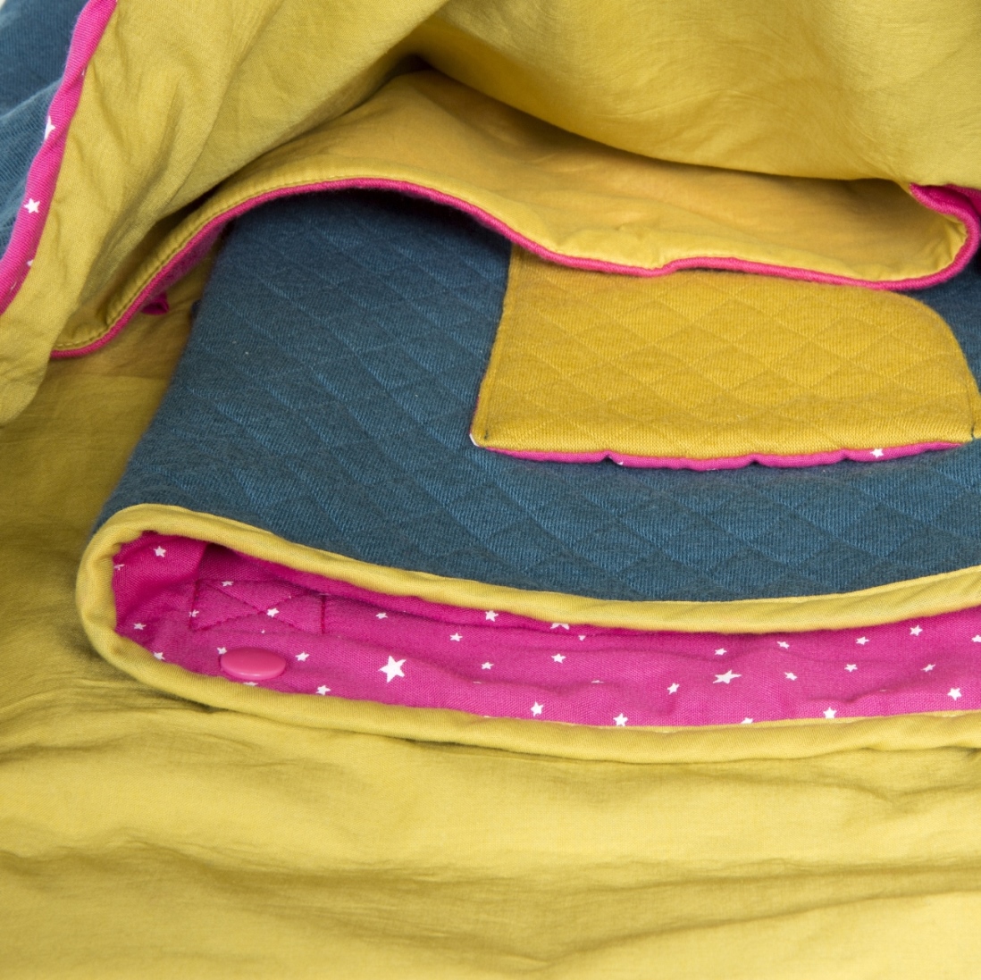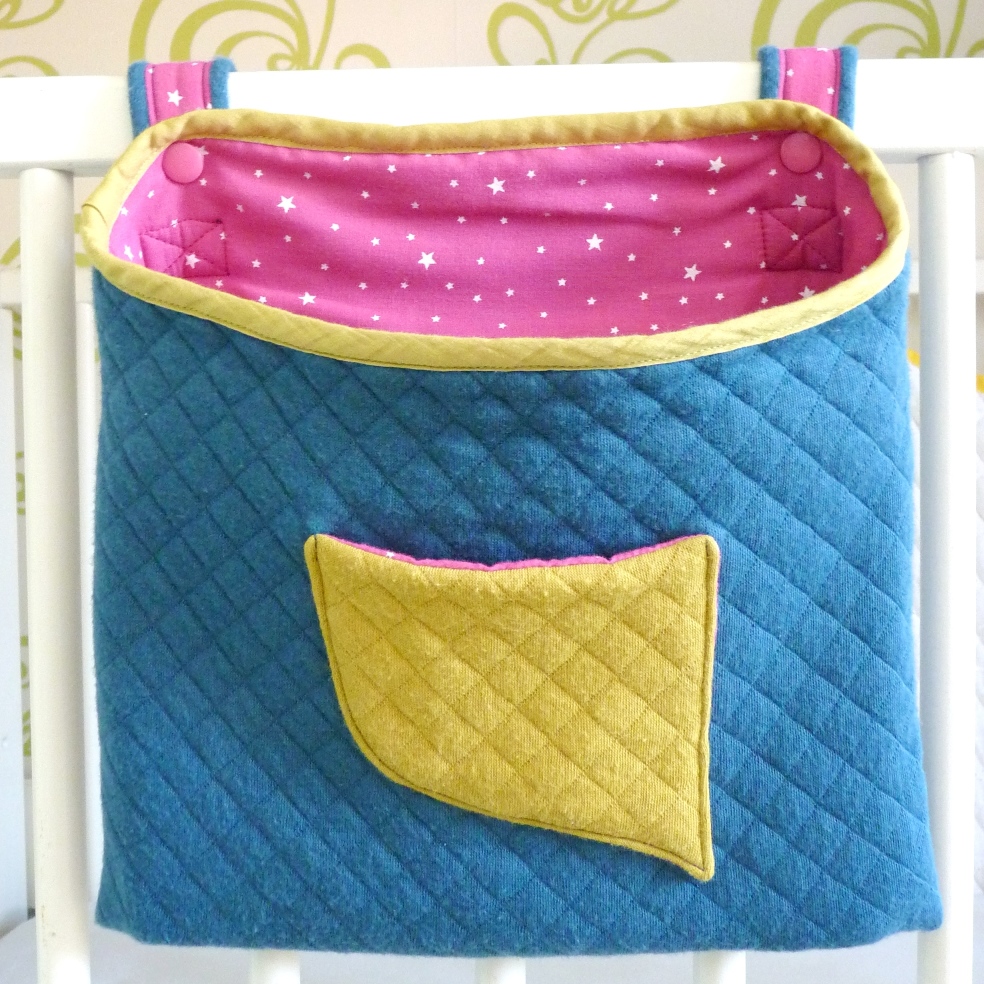 La pochette range-doudou est simple avec une grande poche pour le doudou et une petite devant pour la tétine. Elle s’attache grâce à des pressions résine. Et son petit plus est qu’elle peut se fixer dans le sac à langer toujours grâce à des pressions résine. Comme ça le matin au réveil, hop on met doudou-sucette dans la pochette, et au moment de partir chez la nounou ou la crèche, zou on met la pochette dans le sac à langer !