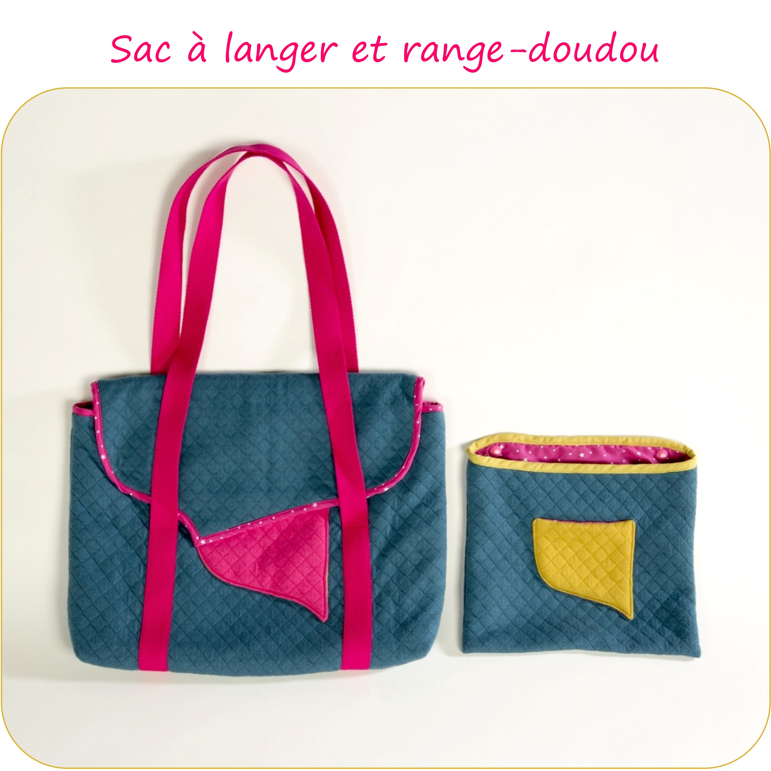 Patron de couture au format PDF : patron de sac à langer et pochette range-doudou.