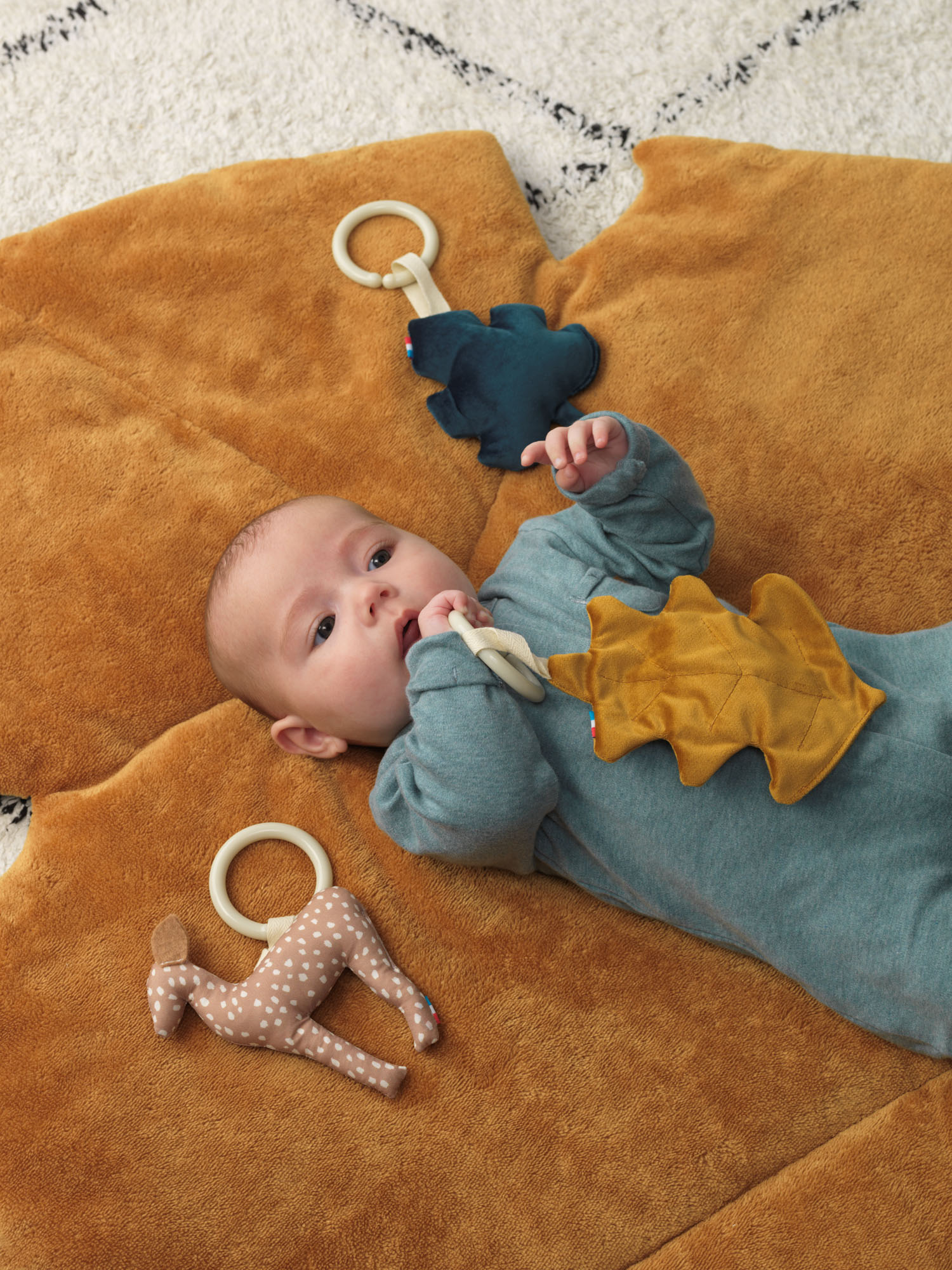 Ce joli tapis d’éveil réversible servira à votre Mini pour ses phases de sieste ou de jeu. Il peut être utilisé pour un temps calme auprès de vous dans le salon aussi bien que pour les moments d’éveil. Il est composé de 3 brides pour y suspendre des jouets d’éveil (vendus séparément). Avec son imprimé faon […]
