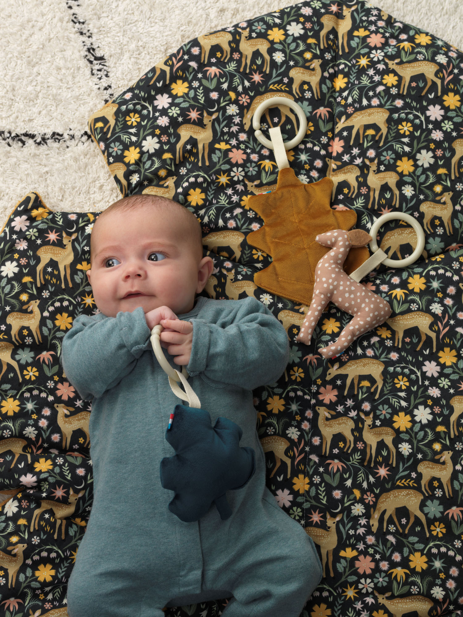 Ce joli tapis d’éveil réversible servira à votre Mini pour ses phases de sieste ou de jeu.