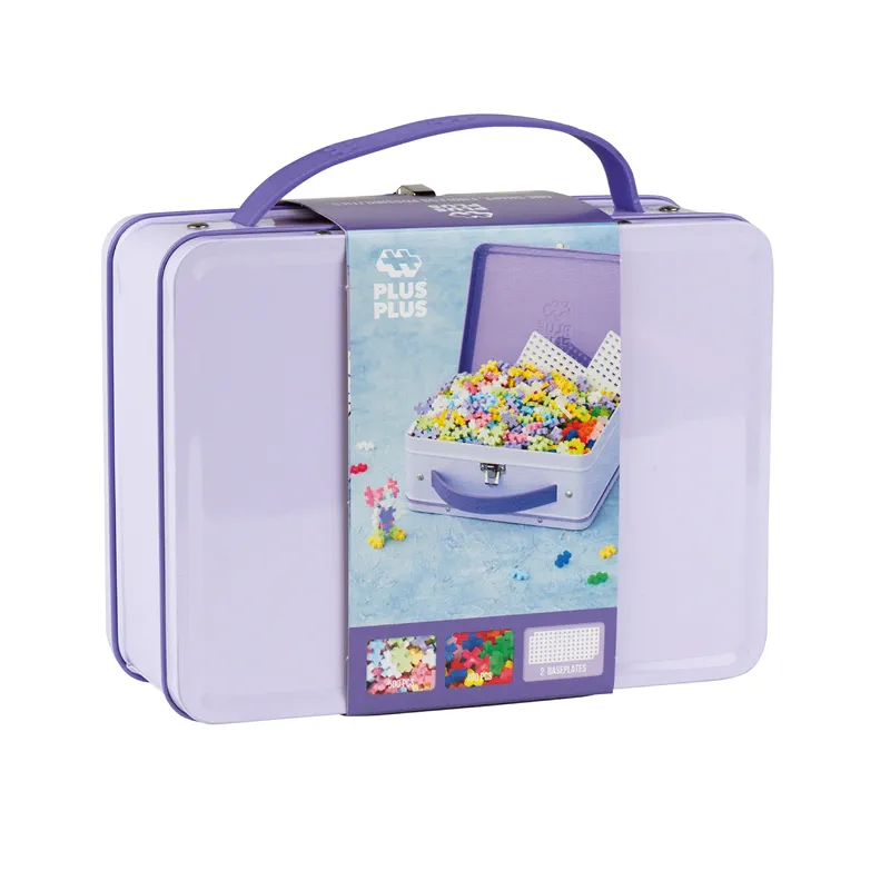 Vous allez adorer le format pratique et compact de cette valise parfaite pour transporter votre jeu de construction préféré. Cette valisette en métal mauve contient 500 pièces de Plus-Plus CLASSIC (20 mm) couleur pastel, 100 pièces couleur néon, deux bases de construction blanches et un livret pour vous guider dans l’élaboration de plusieurs créations. Munie d’une poignée elle s’amène partout : vacances, week-end, train, amis… Avec la valisette Plus-Plus construisez ce que vous voulez et laissez-vous guider par le livret de modèles ou tout simplement votre imagination. Licornes, princesses, personnages, maison, avec Plus-Plus amusez-vous pendant des heures et inventez vos plus belles aventures en 2D et 3D.